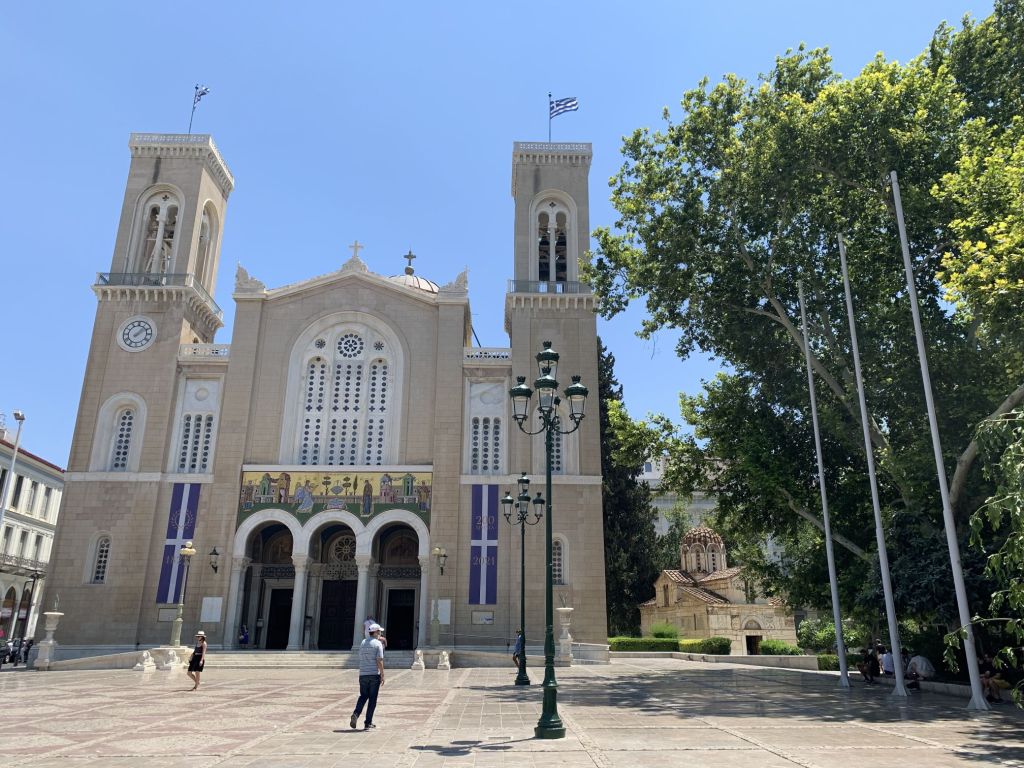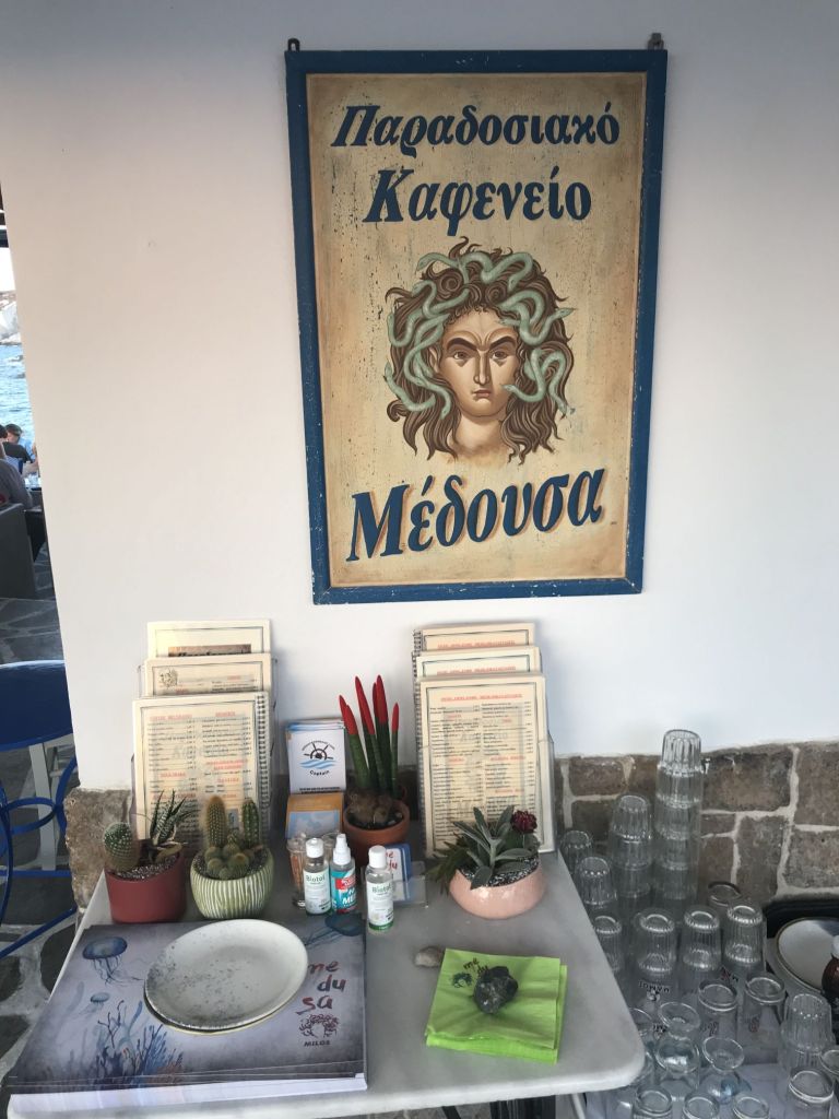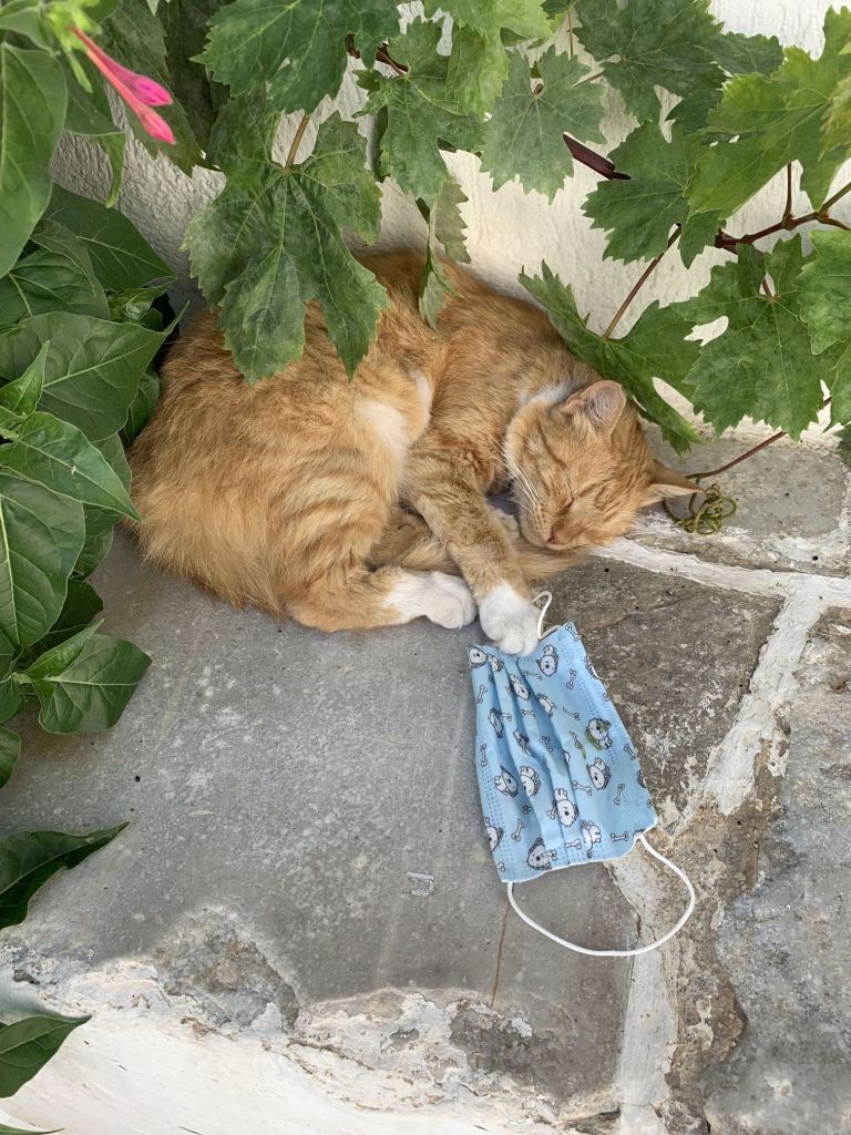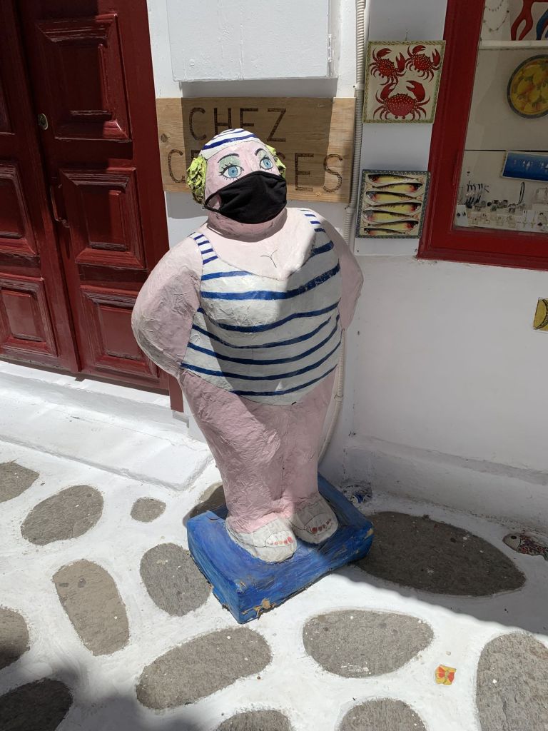 Oweh, die Standard- gegen die Ausgehbuxe getauscht, die Maske vergessen – was tun? Nun, ich bin in Griechenland – man hat meine Not bemerkt und mir kurzerhand eine Maske (neu) geschenkt, sehr nett, wie ich finde!