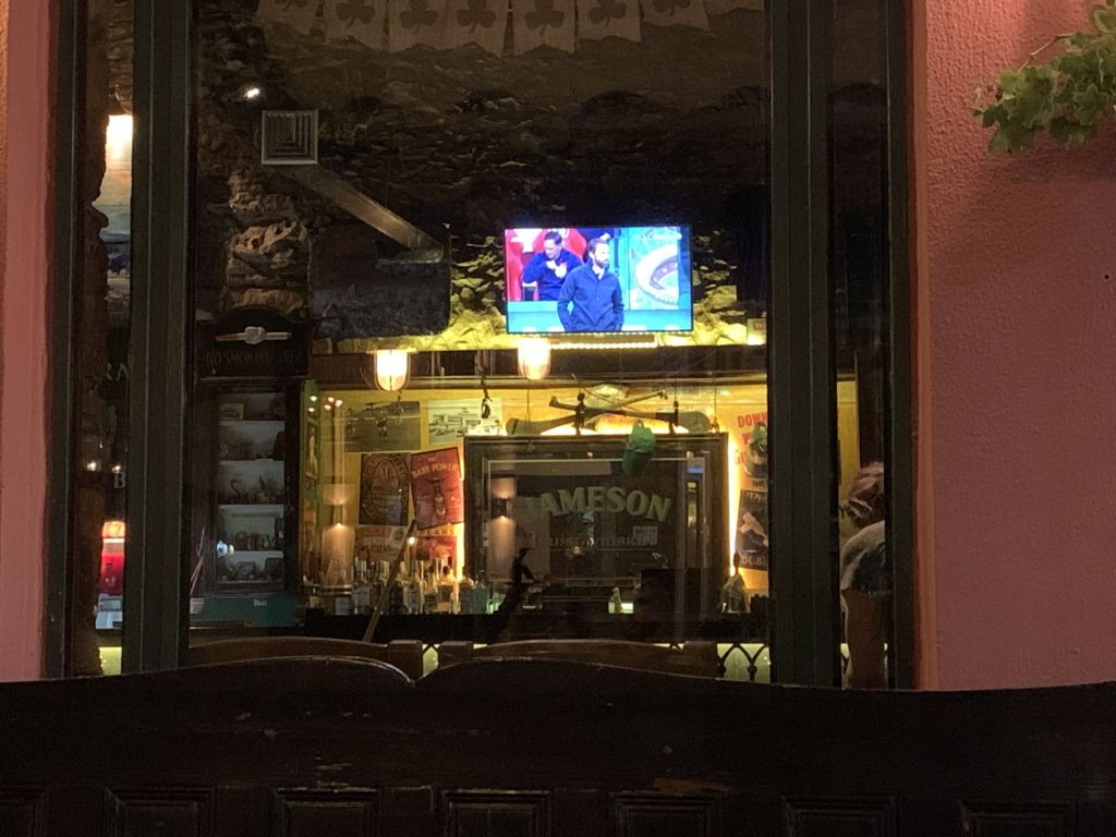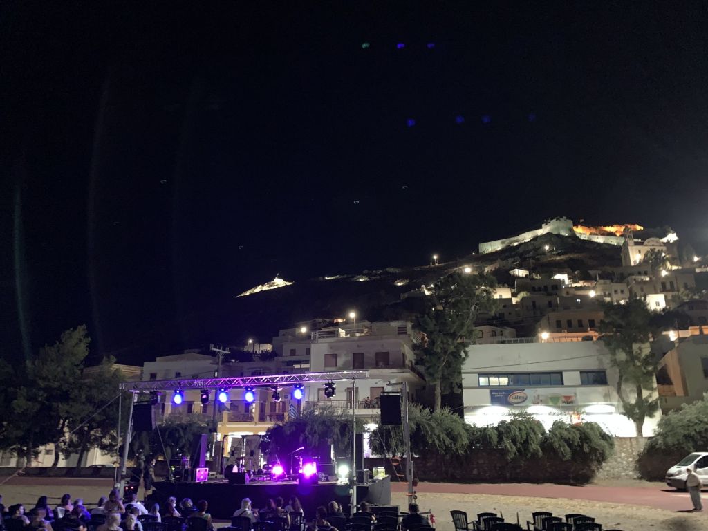 Der Abend des 19. war gekommen, ich also rein in die „Ausgehbuxe“ des Herrenausstatters meines Vertrauens (e&s) und ab zur „Arena“ von Leros / Platanos. Ich war zeitig dran, diesmal nicht der deutschen Tugend folgend, eher weil mein Scudo ja einen XXL Parkplatz braucht, die sind rar gesät auf der Insel – aber die Argumentationskette kennt ihr ja schon…