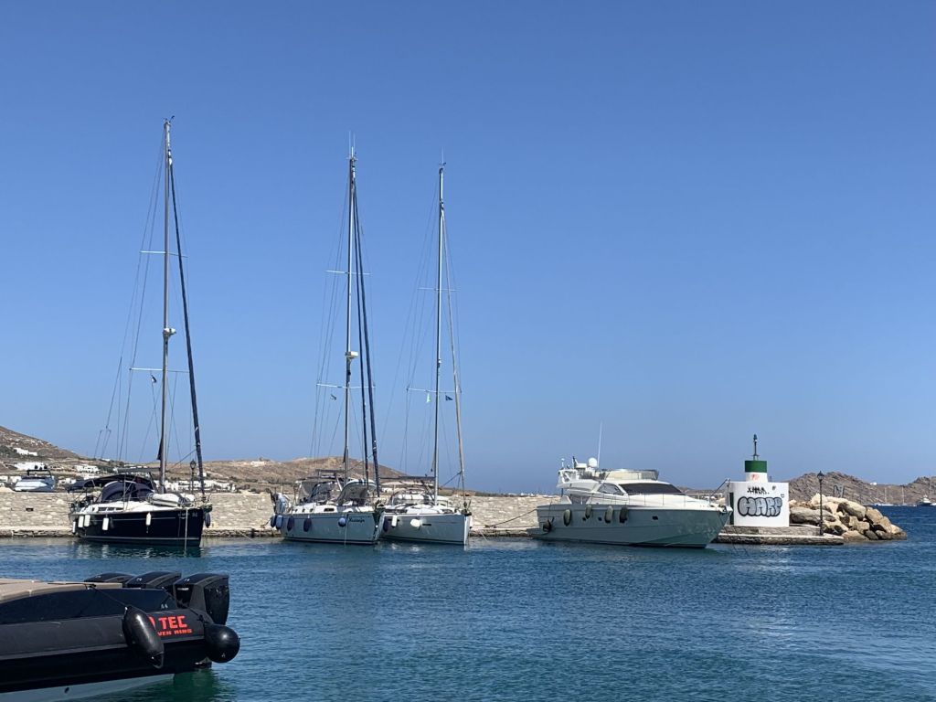 Ich erinnere, es ist August, zu diesem Zeitpunkt noch ohne die Türken welche normaler Weise in Scharen in den Dodekanes fahren (während ich diese Zeilen tippe sind die Buchten voller türkischer Flaggen), war es dennoch reichlich voll in den Buchten der Kykladen und auch auf den kleinen Inseln rundum.