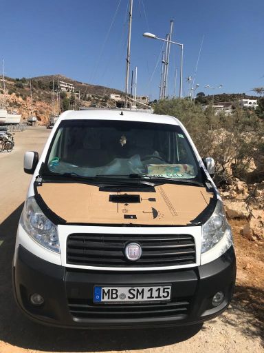 Mein treuer Italiener stand nicht mehr in frischem Gewand da, die Motorhaube war zerschunden, das war so nicht mehr hinnehmbar – also wurde das Teil kurzerhand zum Lackierer gebracht und der treue Scudo bekam ein weniger attraktives Übergangs-Ersatzteil verpasst…