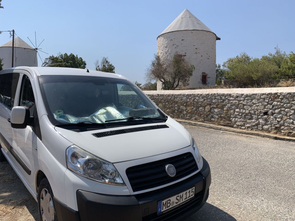„Ist es nicht so, dass der Wagen eigentlich viel zu groß für die Straßen hier ist, zu gut um ihn hier zu verschrammeln? War es nicht immer fein mit dem Roller zum Baden zu fahren? Verbraucht ein Zweirad nicht generell weniger Sprit? Das Parken ist mit dem Minibus auch recht stressig, oder?“