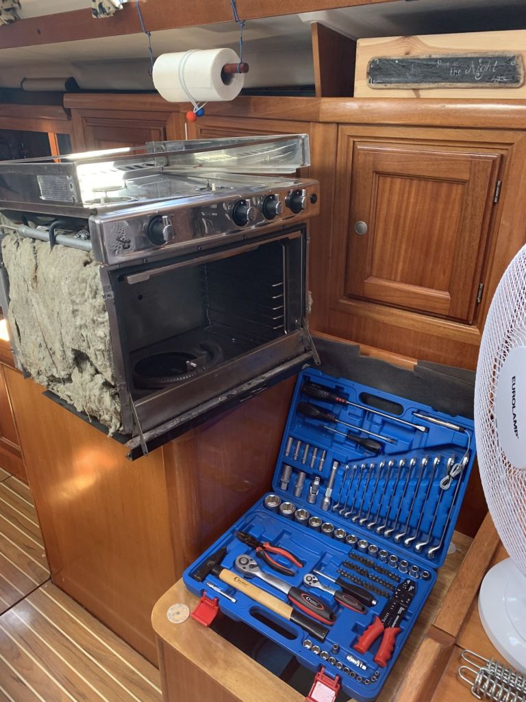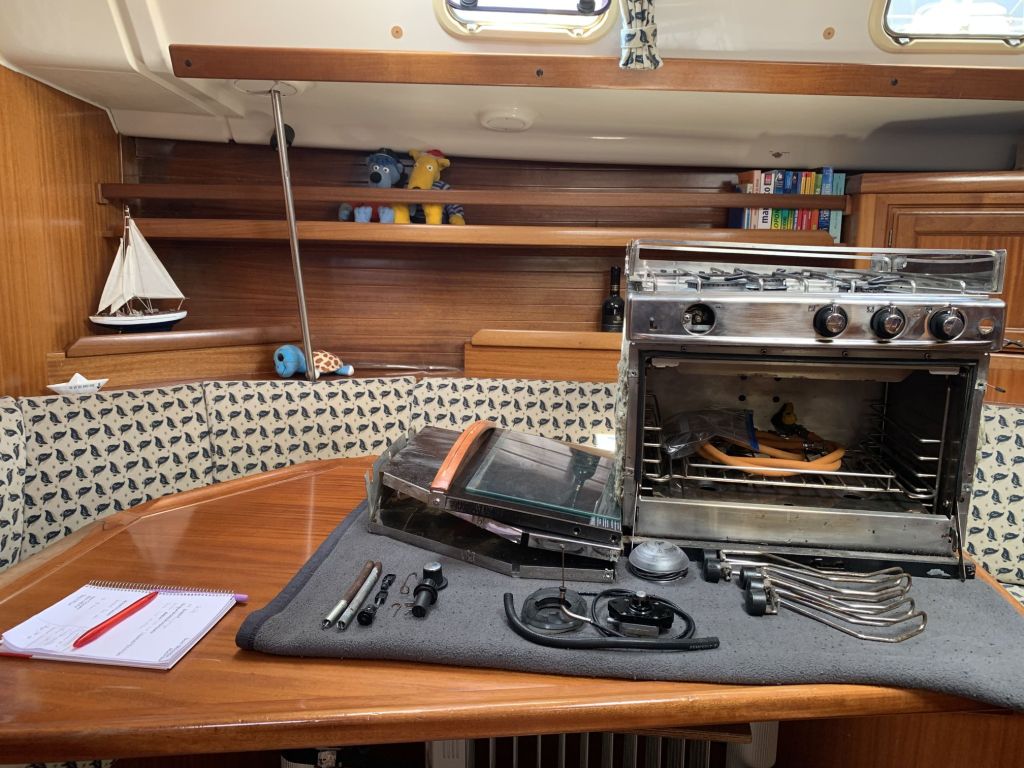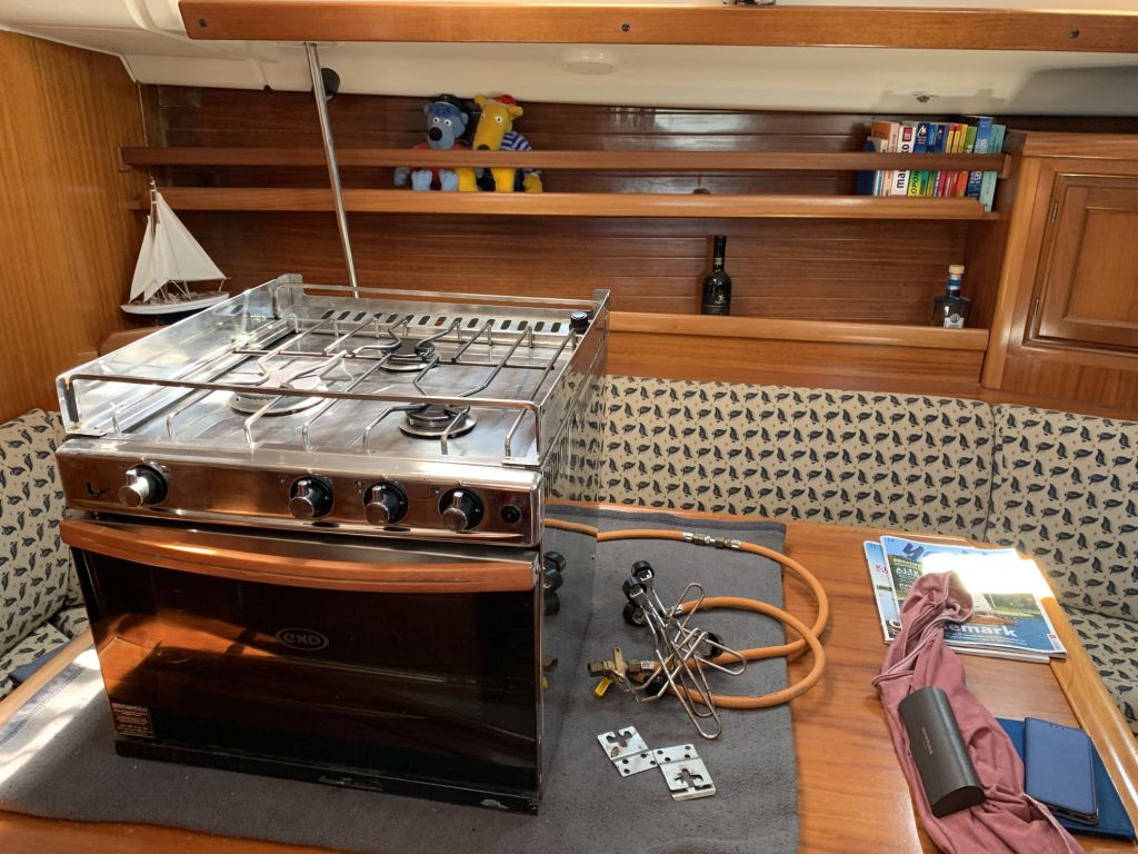 Es wurde etwas hin und her verhandelt, der Ofen entsprach nicht exakt unseren Vorstellungen, aber nachdem der Verkäufer von sich aus einen deutlichen Preissprung gemacht hat, konnte ich nicht widerstehen und habe die komplette Gasanlage des Verkäuferschiffes kurzerhand in meinen Minibus gepackt – ich denke, das Geschäft war so für beide Seiten ok.