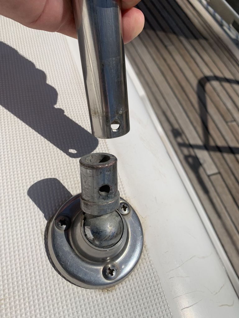 So gestärkt und motiviert ging es weiter. Es plagen mich schon lange die Füßchen meines Bimini. Das Problem mit Neuteilen zu lösen würde bedeuten mein Deck neu anzubohren – das will ich nicht!