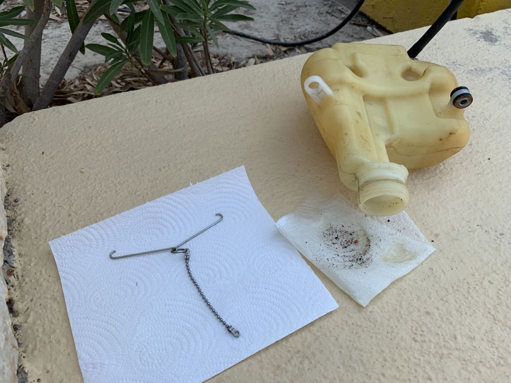 Dem Übel rücke ich nun zu Leibe! Ich stelle fest, dass im Tank immer wieder Partikel unbekannter Herkunft sind…