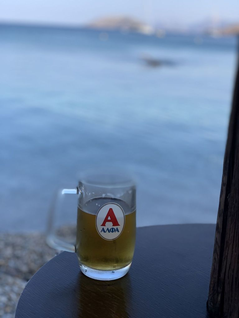 Das habe ich mir natürlich überlegt und gedanklich optimiert – so blieb täglich Zeit für den Gang zu meinem Lieblingsstrand. Idealer Weise etwas später, wenn die ersten urlaubenden Festlandgriechen die Liegen in der ersten Reihe räumen – für MICH!