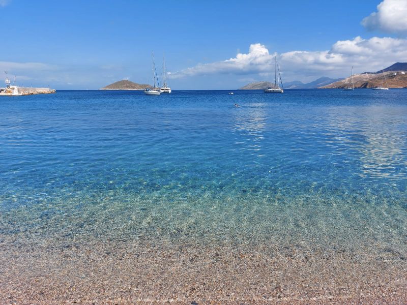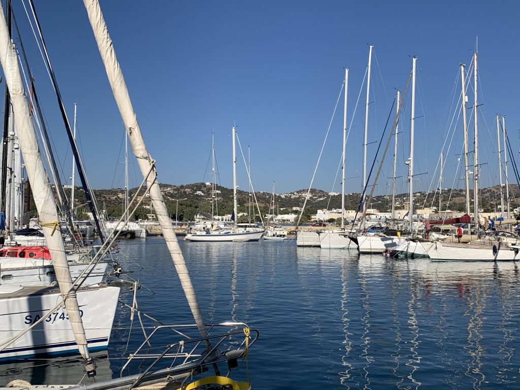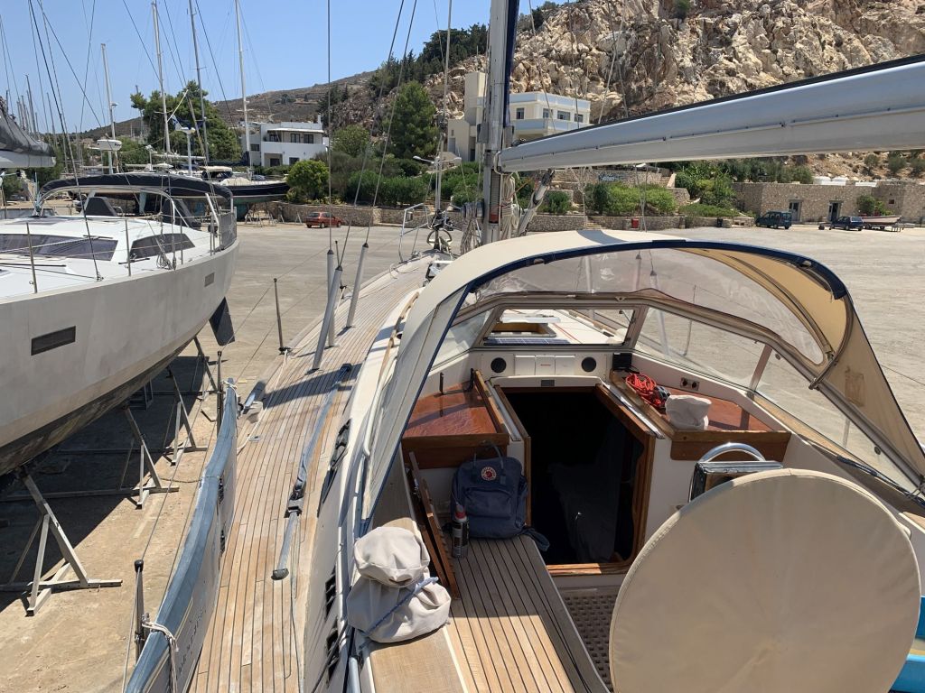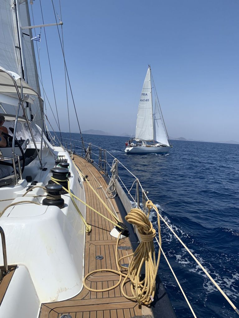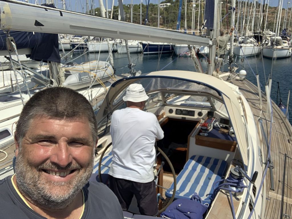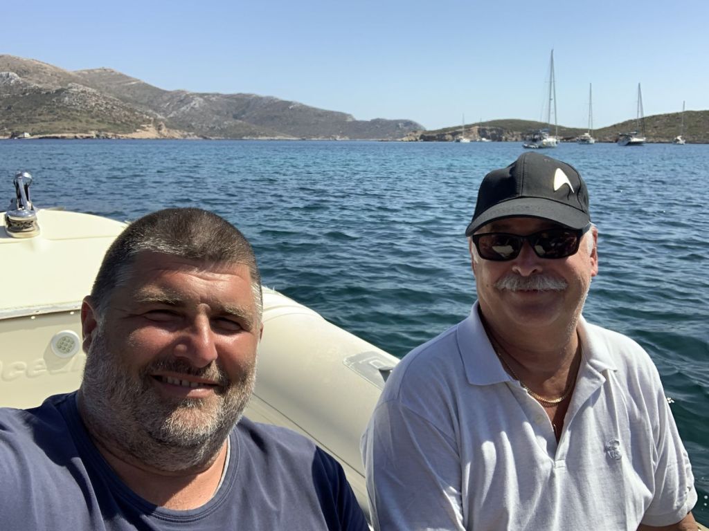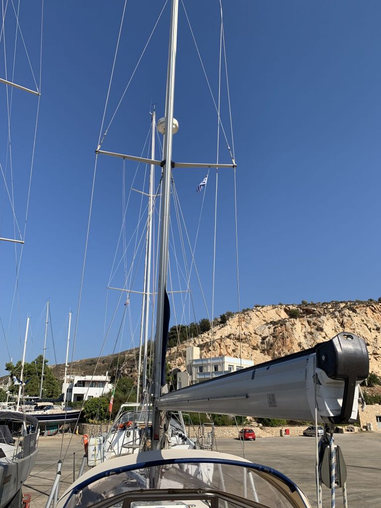 Wenn Ihr den Beitrag des letzten Monats gelesen habt wisst Ihr, dass Hans-Peter und ich die Gelegenheit hatten, mit Werner zusammen eine Testrunde zu segeln. Dies scheint Hans-Peter gefallen zu haben und er hat Sibylle und mich eingeladen, auch mit Petra und ihm einen Schlag zu segeln. Der Plan sah vor, die gleiche Wegstrecke zurückzulegen wie ein paar Wochen vorher mit Werner. Also Lakki, nordwärts, zwischen Leros und Archangelos durch, wieder südwärts bis in die Bucht von Alinda. Dort wollten wir bei Dimitris´ „To Steki“ essen, bevor wir mit dem Taxi zurückfahren.