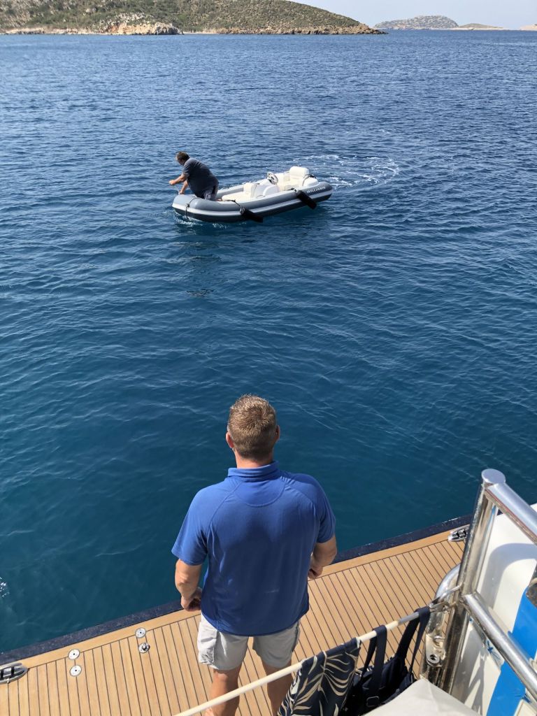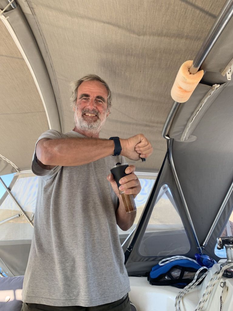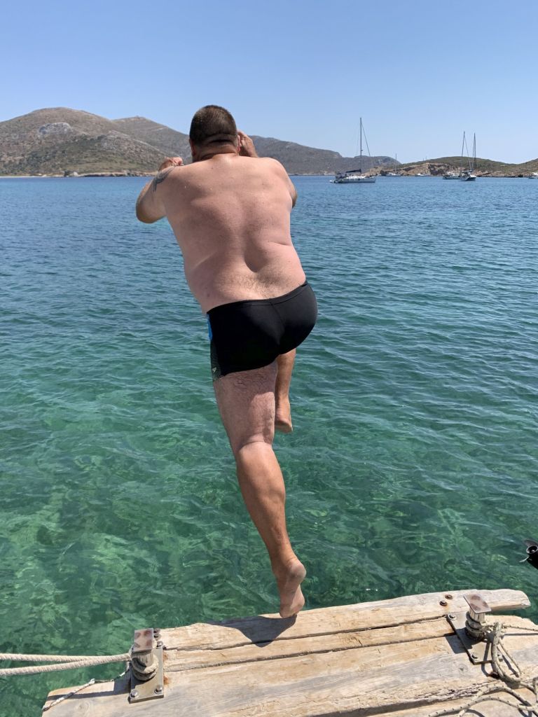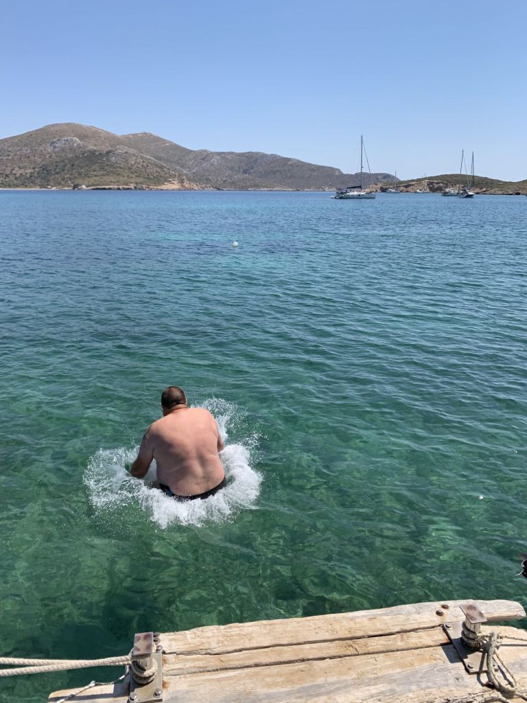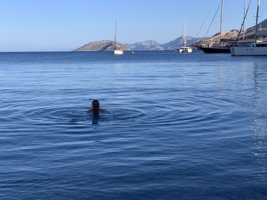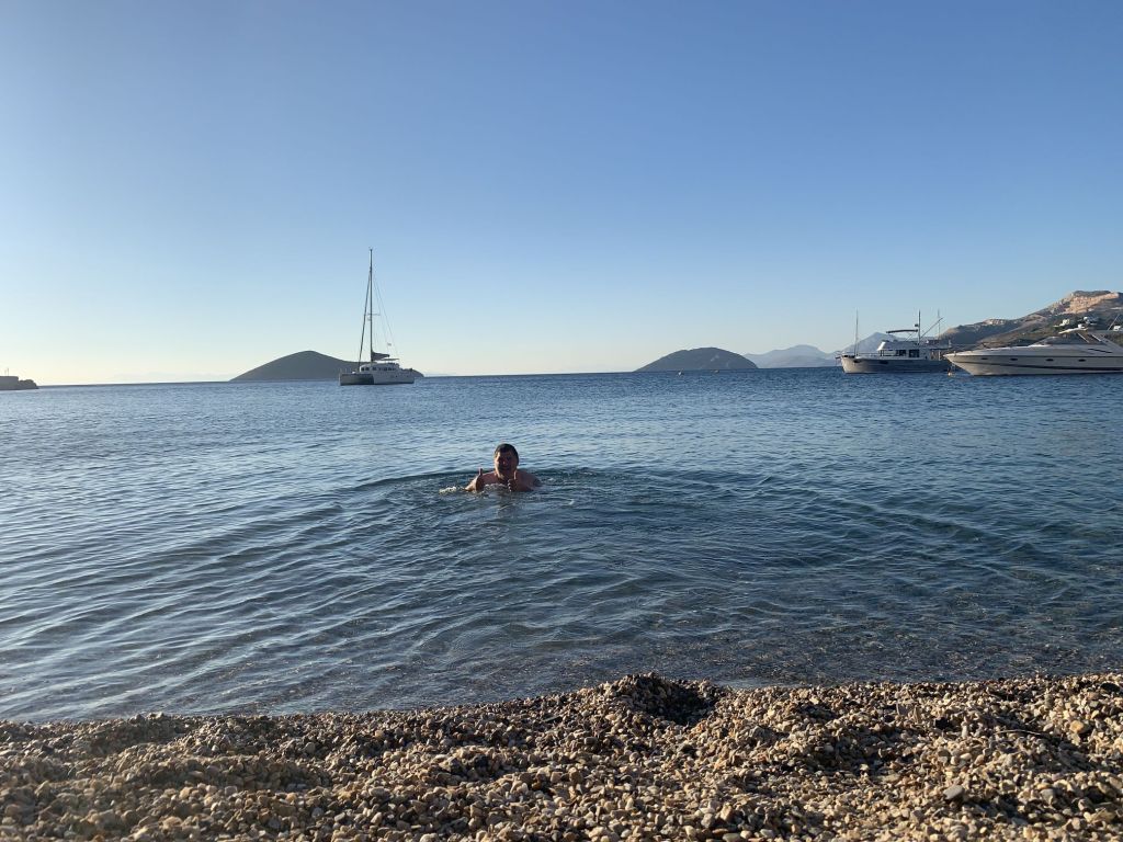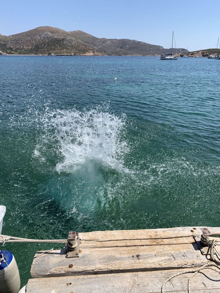 Wir beziehen unser schwimmendes Zuhause, machen klar Schiff und aklimatisieren uns. Dazu gehört für mich zwingend ein Bad im Meer – dieses Anliegen wird sofort in die Tat umgesetzt.