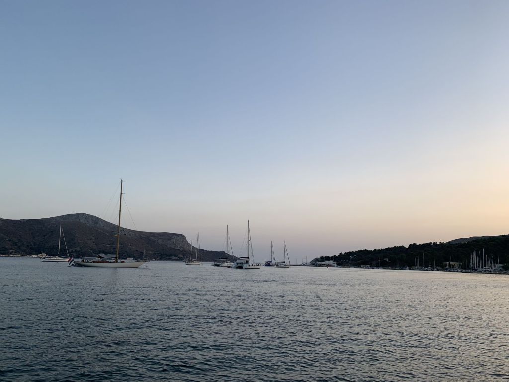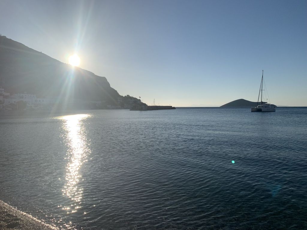 Die Sonne taucht die Einfahrt zur Lakki-Bucht in unwirkliches Licht, der Tag endet, wir gehen mehr als zufrieden und glücklich ins Bett.