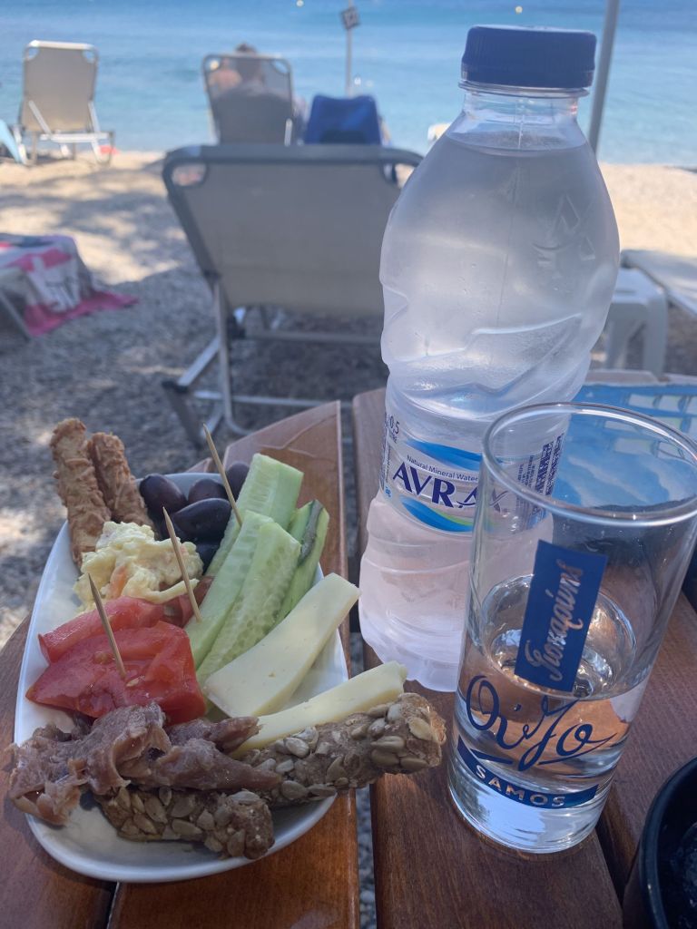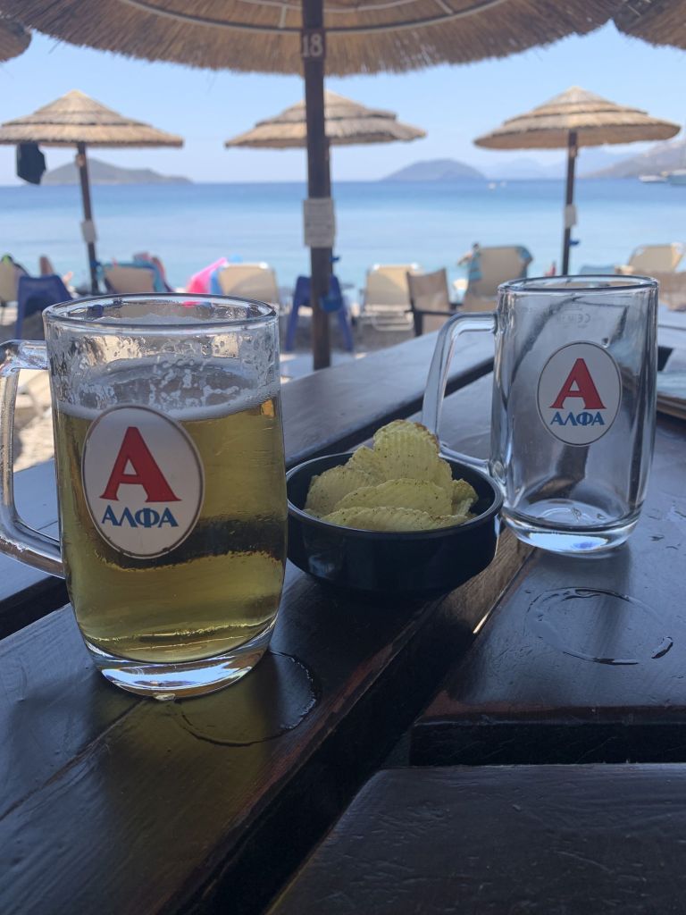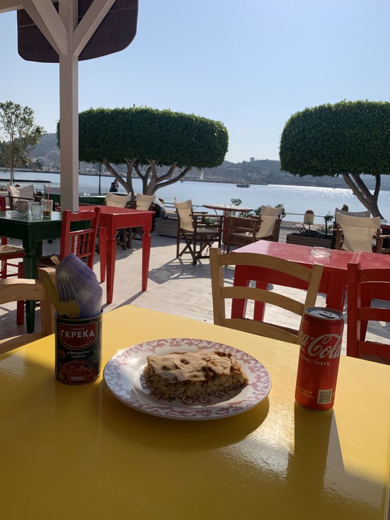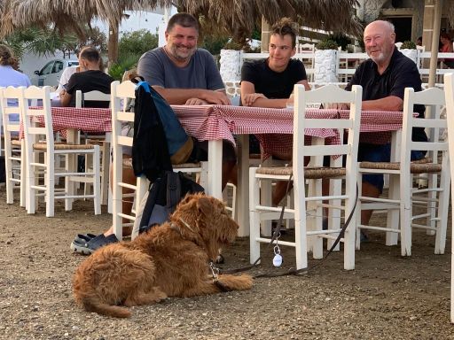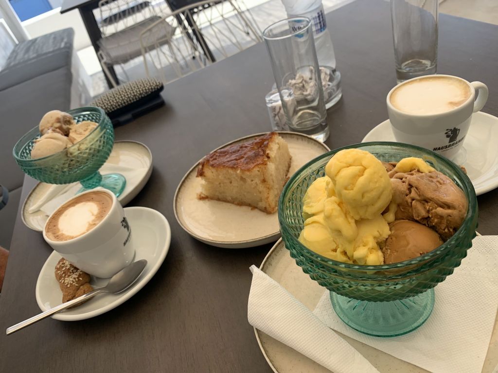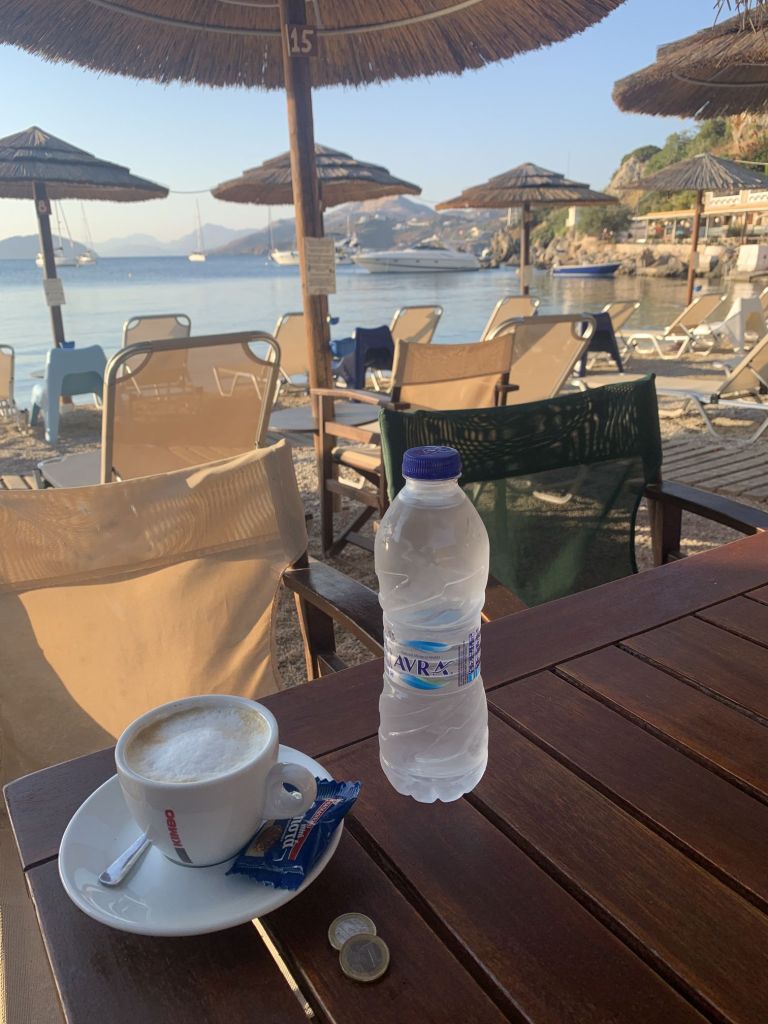 Da der Strand von Gourna direkt um die Ecke lag, haben wir uns im dortigen Cafe eine köstliche Kaltschale gegönnt und Merlin bekam etwas Auslauf.
