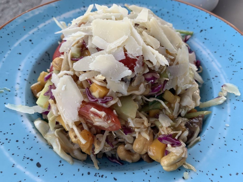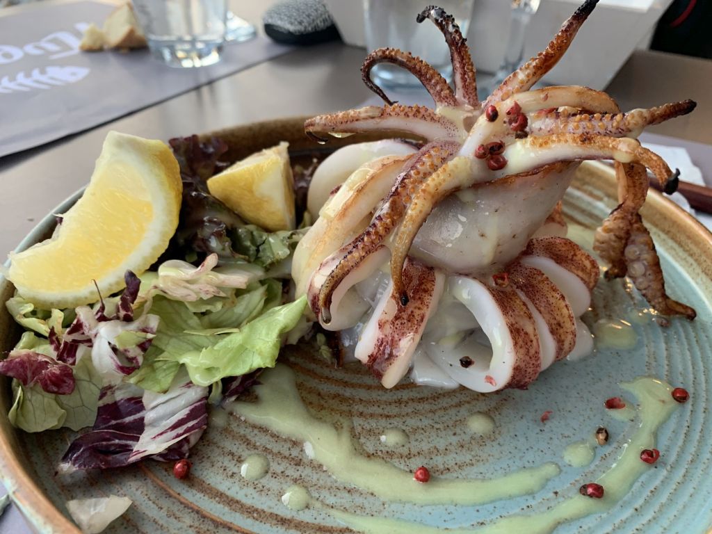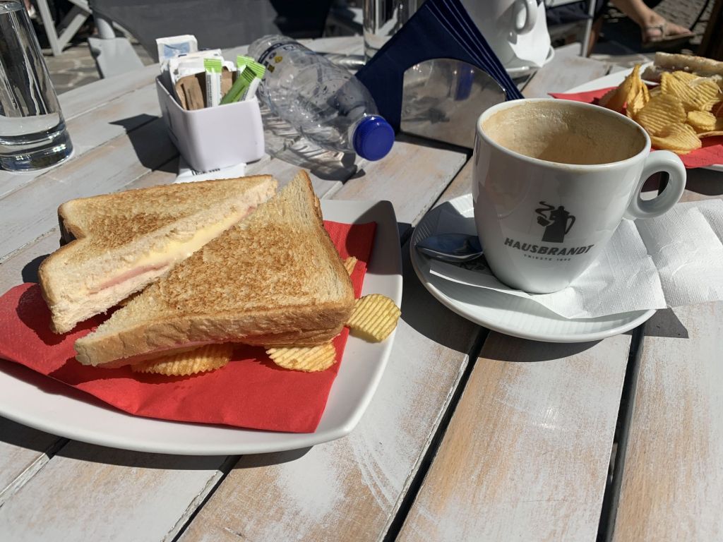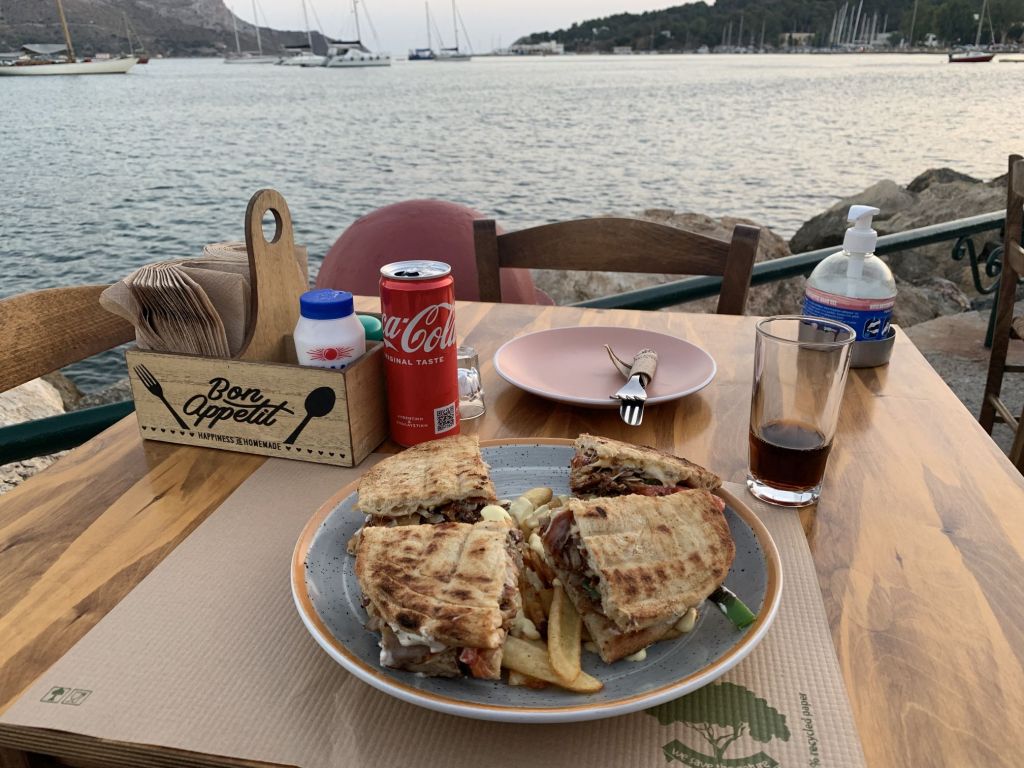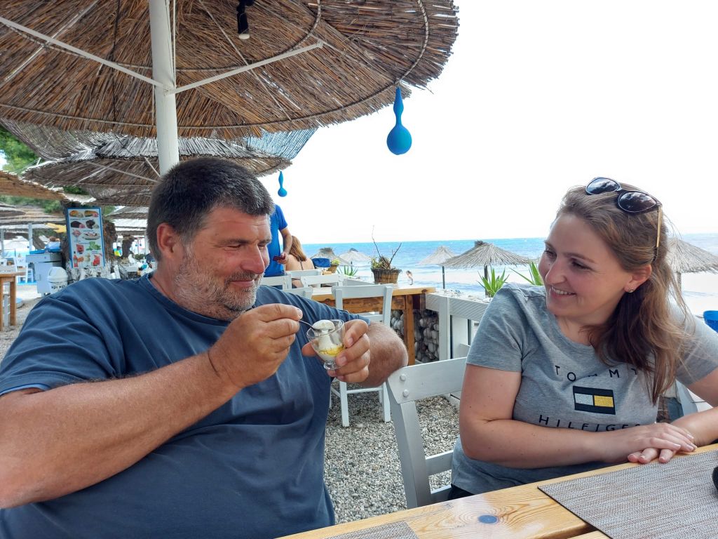 Da der Strand von Gourna direkt um die Ecke lag, haben wir uns im dortigen Cafe eine köstliche Kaltschale gegönnt und Merlin bekam etwas Auslauf.