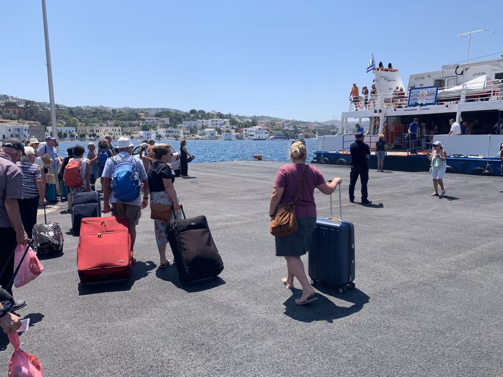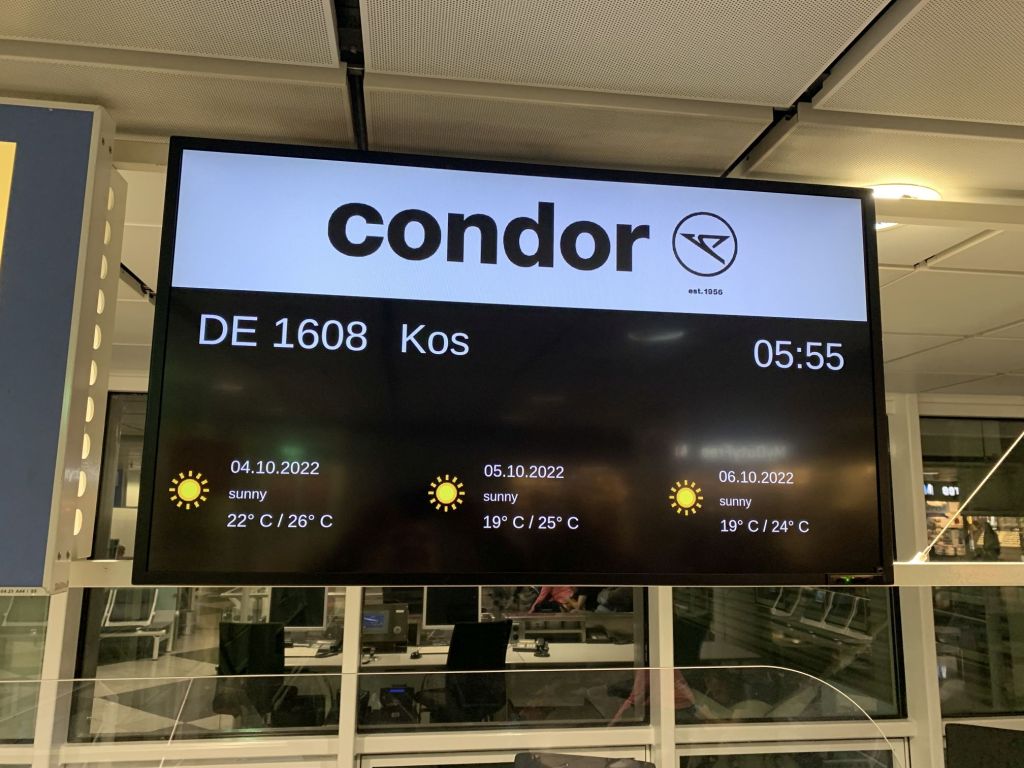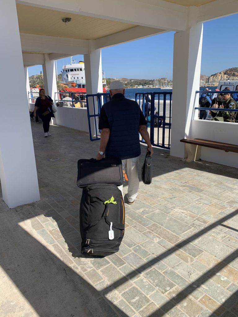 …zunächst!!! Wir wussten, dass wir knapp kalkuliert hatten. Unser Flug müsste just in time landen, wir müssten relativ schnell am Gepäckband sein und unsere Tasche dürfte nicht zu lange auf sich warten lassen – dann sollten wir noch ein Taxi erwischen. Wenn alles klappt KÖNNTEN wir unsere Mittagsfähre nach Leros erreichen.