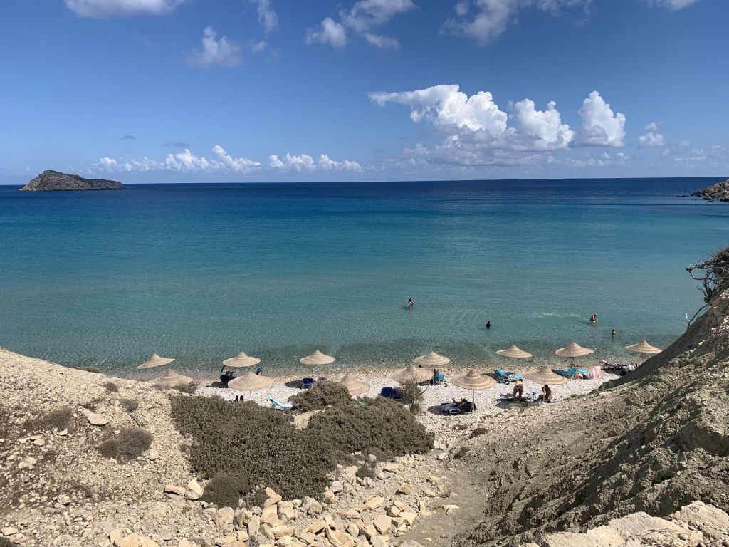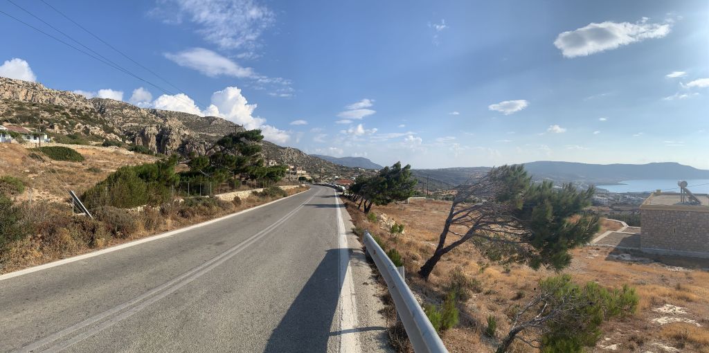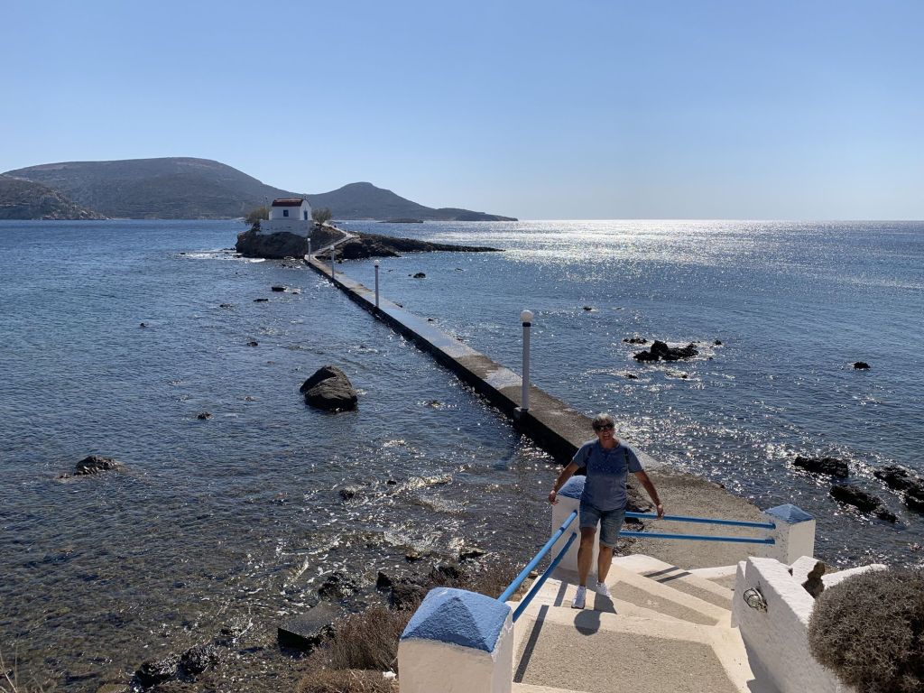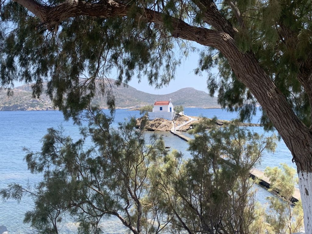 Nach dem Frühstück brachen wir auf – wir entdecken die Insel von Süd nach Nord. Erstes Ziel – Xirokampos, das Kirchlein Agios Kavouradena.
