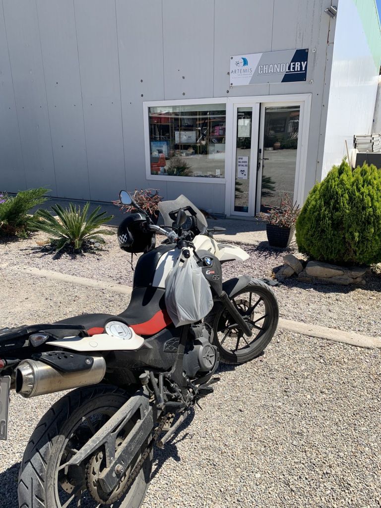 Die Teile wurden bei Giorgos „Boat & Parts“ abgegeben und das Tagwerk für beendet erklärt. Die Fertigung würde ca. eine Woche in Anspruch nehmen – passt.