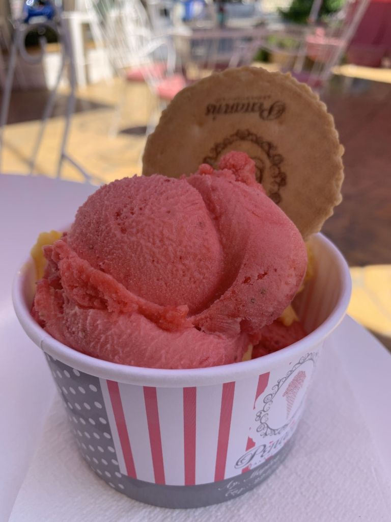 NATÜRLICH genehmigen wir uns eine Speiseeisspezialität als wir das „Sorbet“ passieren, wie könnte man da vorbeigehen?