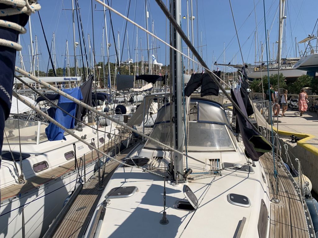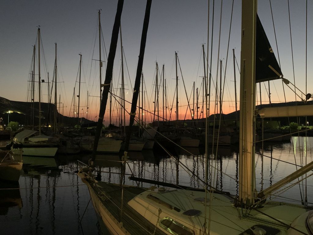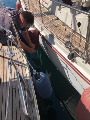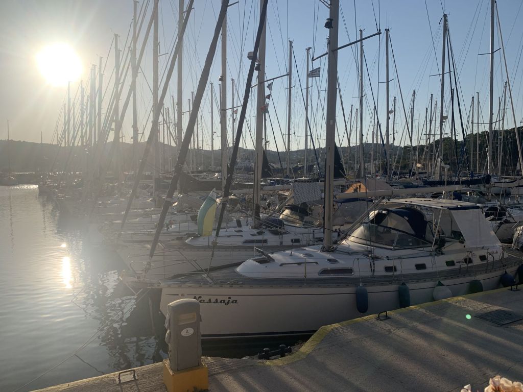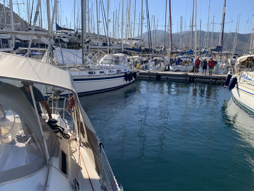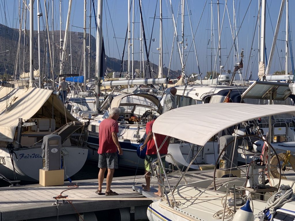 Als ich hochkomme steht der Chefmarinero bei uns am Boot und sagt stolz lächelnd „…SUNNY SIDE UP, ok Captain?“ Ich verstehe was er meint – die SUNNY SIDE UP ist das Schiff unserer Freunde Mireille und Roland, das Schiff ist älterer Bauart und für die Länge etwas schmäler – mir würde also „der Platz“ bleiben. Ok, das ist vielleicht die allerbeste Lösung – beide Flanken geschlossen und auf der einen Seite ein Schiff von Freunden die wir ansprechen können – der Winter kann kommen.