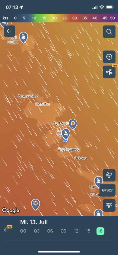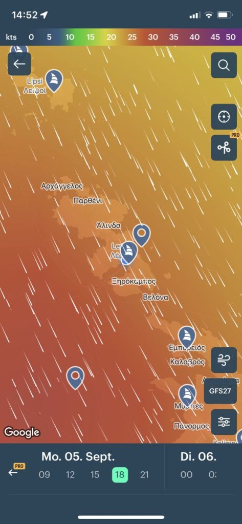 Wir planen eine große Runde durch die Nördliche Agais, hoch bis Thessaloniki. Dann, so der Stand der Dinge heute, werden wir nach Leros zurückkehren.