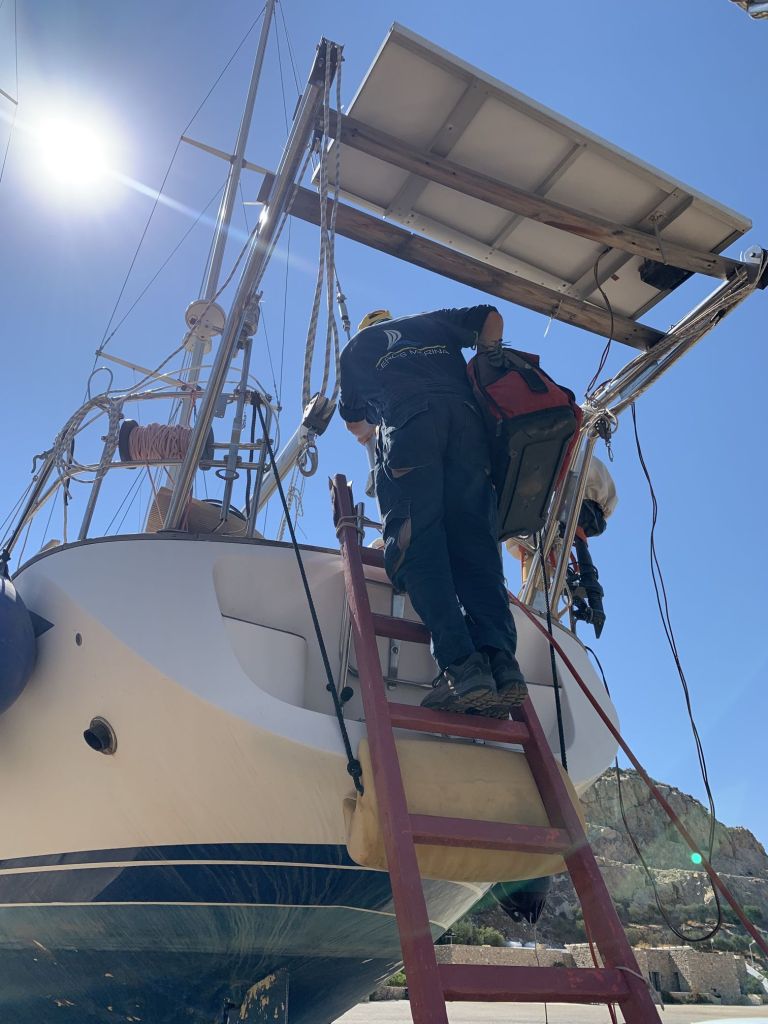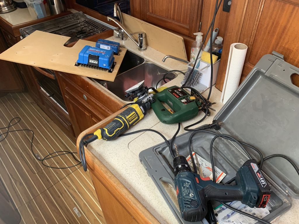Inzwischen haben immer mehr Freunde realisiert, dass wir mit NESSAJA das Jahr 2022 in der Marina verbringen werden. Es liegt auf der Hand, dass man sich für kleine Gefälligkeiten an uns wendet. Da helfen wir jederzeit gerne aus – so zum Beispiel als es um das stetige Laden von Marcus´ Wohnmobilbatterie ging…