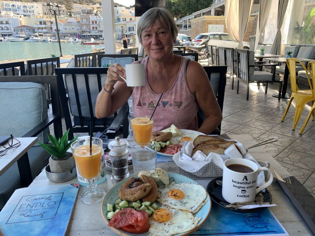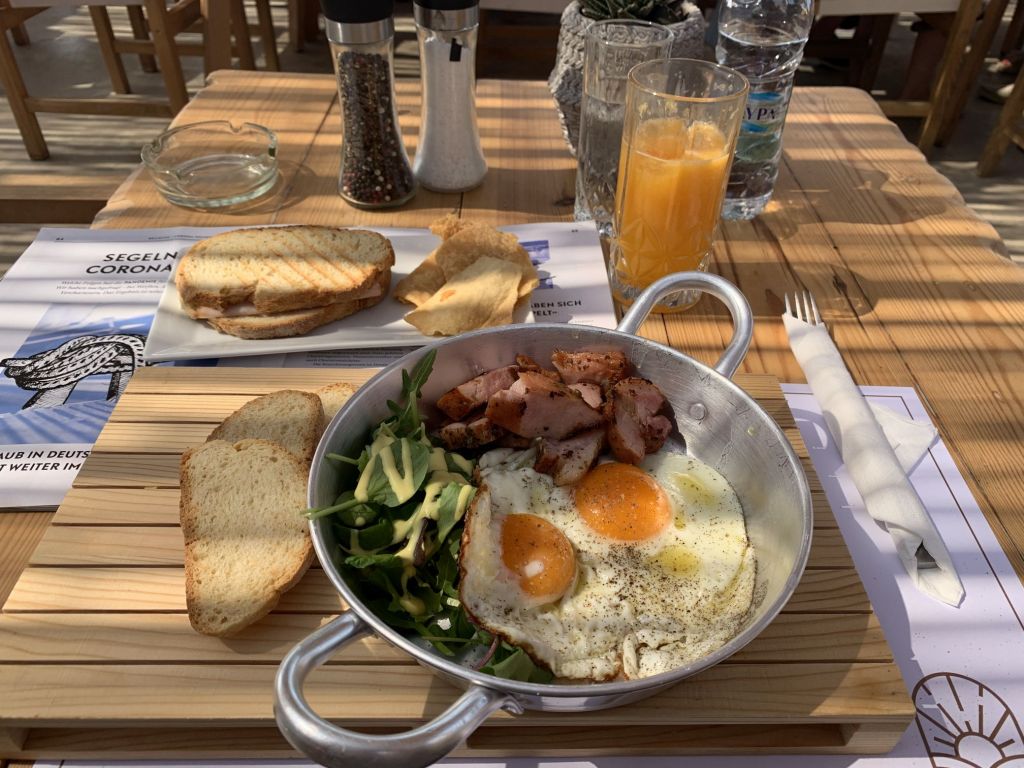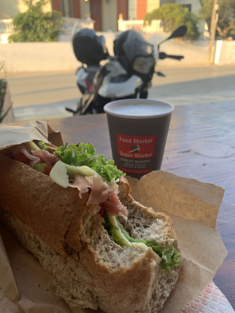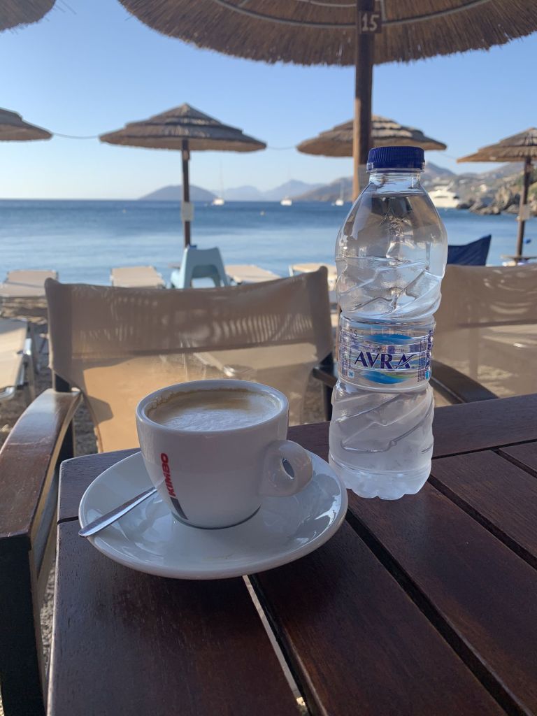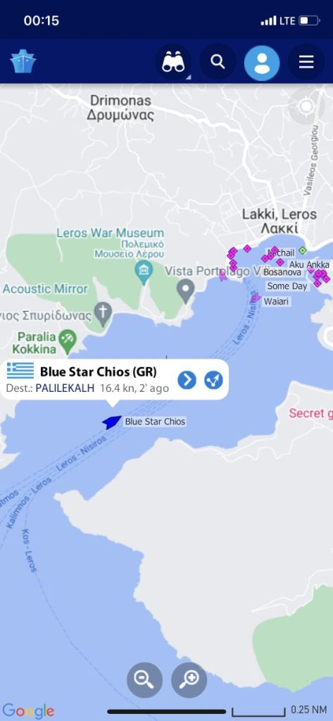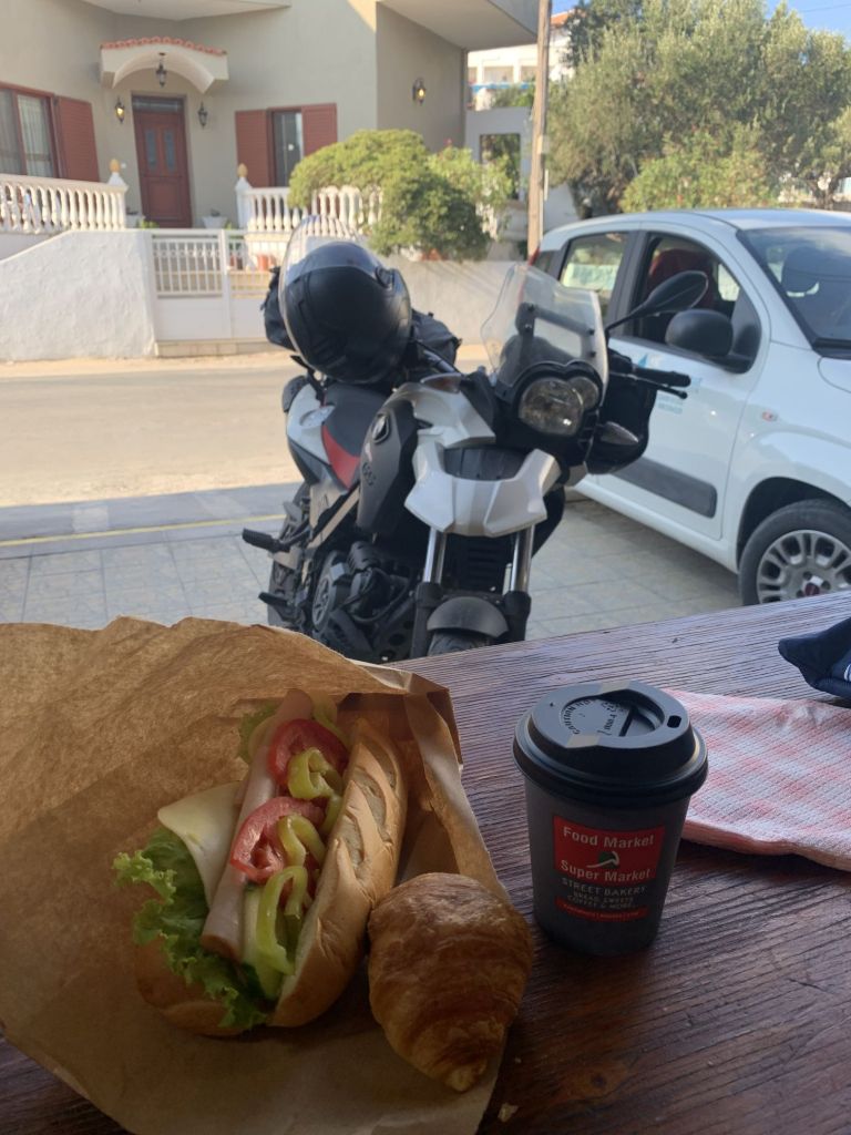 Angekommen in Leros gönnen wir uns ein Frühstück und fahren runter. Wir sind zuhause, vom Weckerklingeln bis zum Frühstück auf der Insel acht Stunden. Ich glaube, weniger geht nicht.