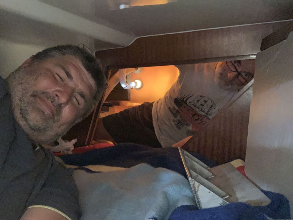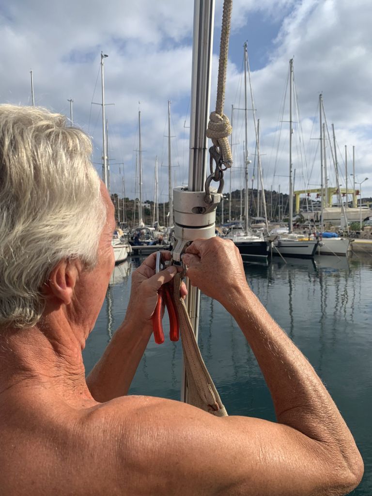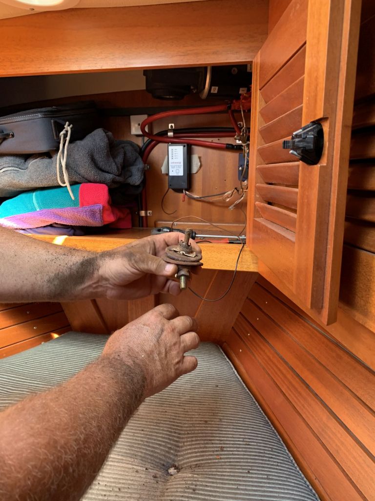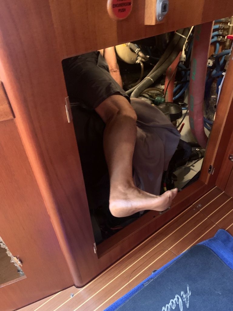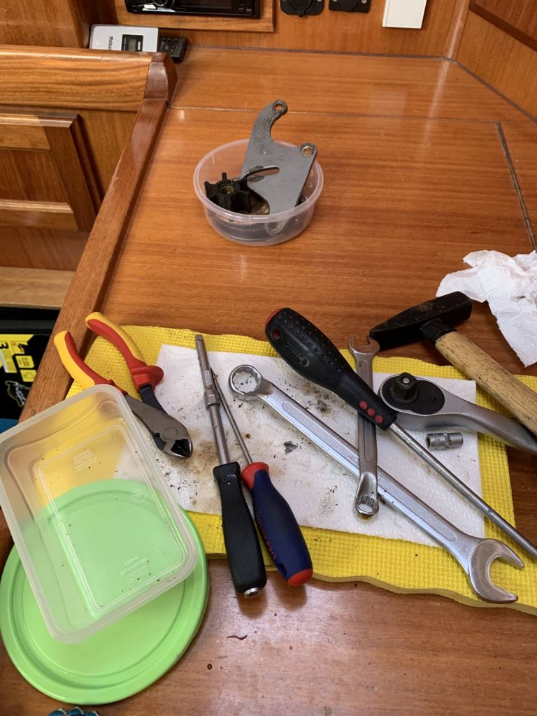 Er kommt an Bord mit allerlei Zetteln und plant mehr oder minder einen umfangreichen Eingriff – man könne das schadhafte Teil schließlich nicht drehen und dies verlange somit die Demontage einiger Umfeldteile. Ok – ich höre zu und denke nach, ich mache das anders…
