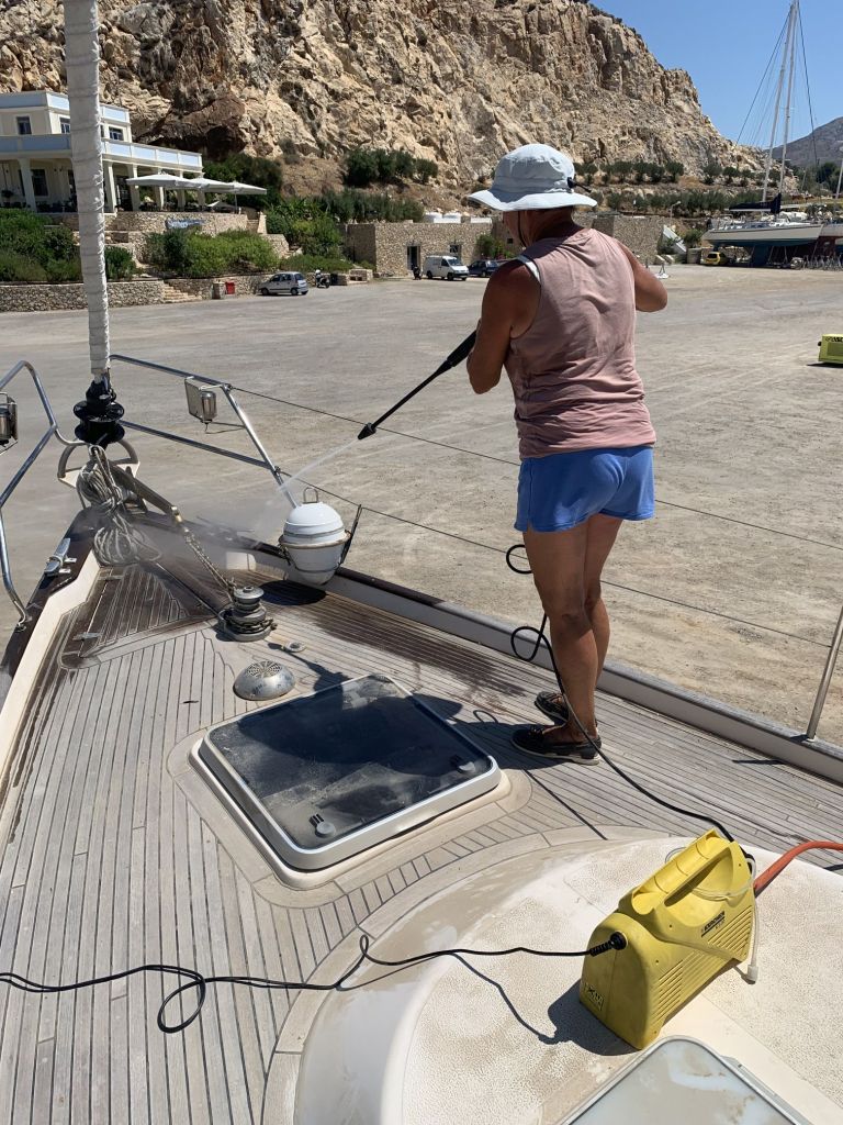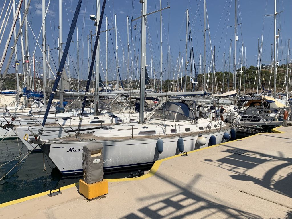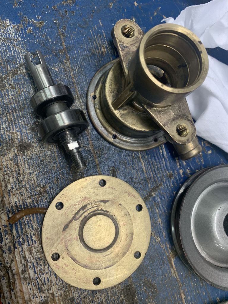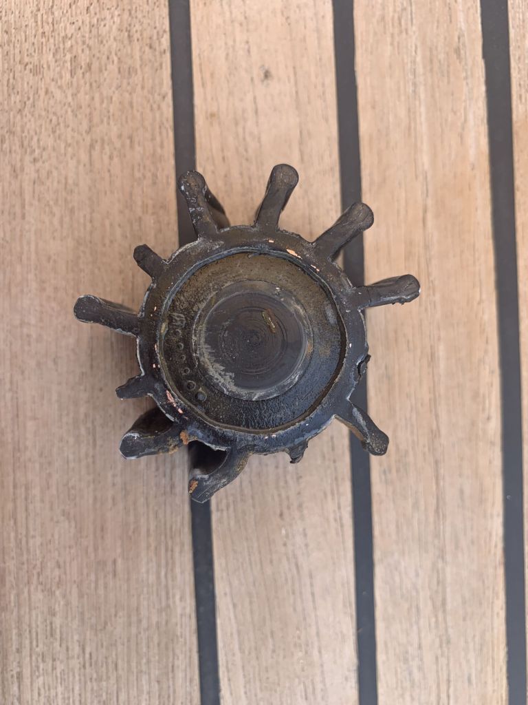 Ich möchte am letzten Tag des Monats noch ein offenes „Fremdprojekt“ abgeschlossen wissen und vereinbare einen Termin bei Giorgos in dessen Werkstatt „Boat & Parts“. Ich muss noch die Seewasserpumpe der ENJA instandsetzen und brauche zum Polieren der Welle und Umpressen der Lager die Hilfe von Giorgos.