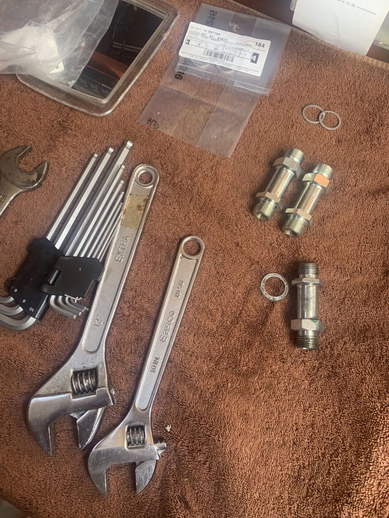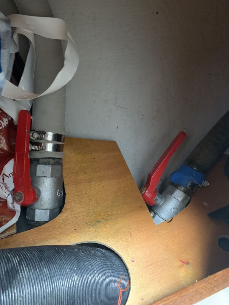 Der vordere rote Hahn ist locker und muss raus – man kann aber weder den Hahn am Fitting drehen, noch das Fitting am Tank – alles steht irgendwo an. Ja verdammt nochmal, kann denn nie was klappen???