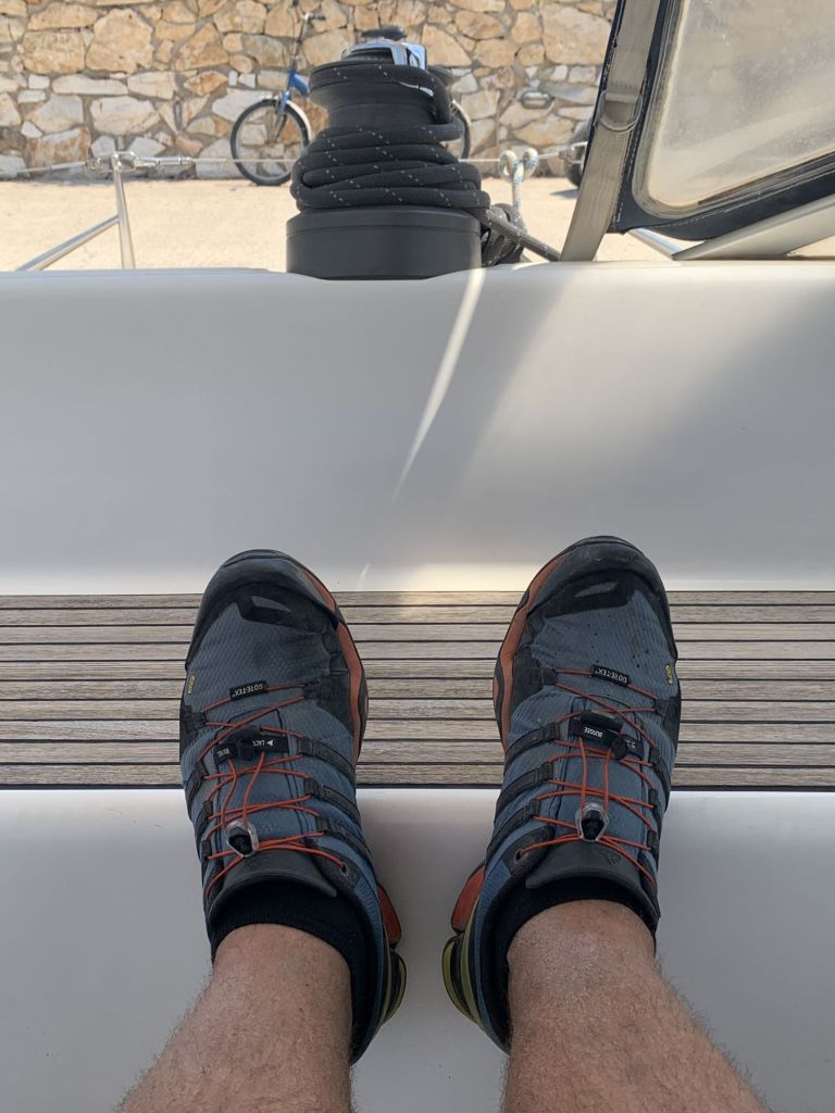 Dumm nur, dass der Mann auf LABRICOLE eben genau der Mauro ist, zu dem der Schreihals gehört, den ich im letzten Monatsbericht schon vorgestellt hatte. Er baut sich immer neben UNSEREM Schiff auf und schreit quer über unser Deck nach seinem Ragazzo. Ginge er 5 Meter weiter könnte er klopfen – ob ich es ihm mal sage?