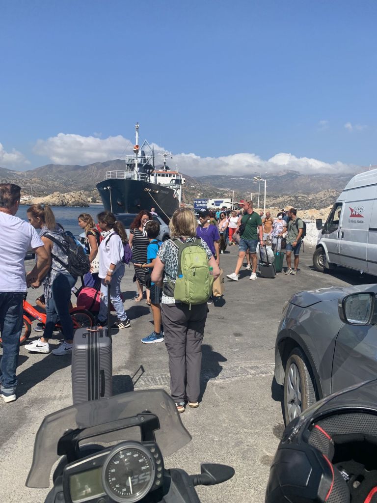 Wir kamen in Kos an als die Fähre gerade einlief. Ich bedankte mich mit einem großzügigen Trinkgeld, rannte über den Platz zum Anleger und mir wurde erst als ich die wartende Menge sah klar – geschafft! Wir haben es geschafft, minutiös! Wir hätten keine zwei Minuten später dran sein dürfen.