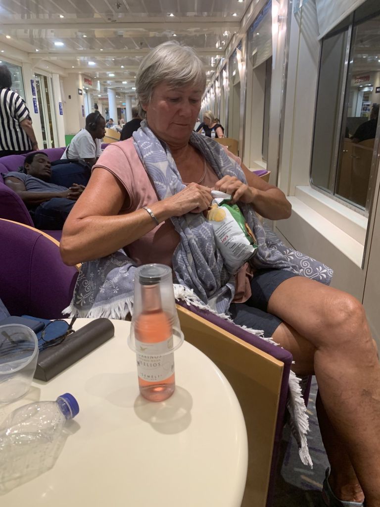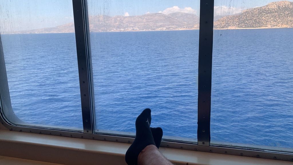 Wie groß unser Glück war, realisierten wir erst auf der Fähre. Sibylle hatte gecheckt, dass es für den Fall wir würden die Fähre versäumen, eine große Nachtfähre gab. Aus unserer Sicht war das Risiko also ein Tag auf Kos.