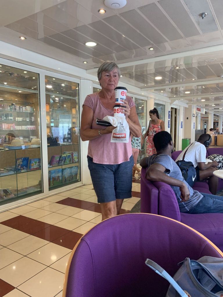 Als die Tasche kam, war ich (fast) der Letzte, hastete zum, mit laufenden Motor wartenden, Taxi und wir rasten los. Ich konnte dem Mann schildern um was es ging und er wollte zeigen, dass er der, nach eigenem Bekunden, „best Taxidriver in town“ ist. Ich wusste von meinen Dienstreisen – meist geht es gut, checkte auf „Marine Traffic“ den Standort der Fähre und ließ den Fahrer gewähren. Sibylle bemühte sich, nicht zu schreien!