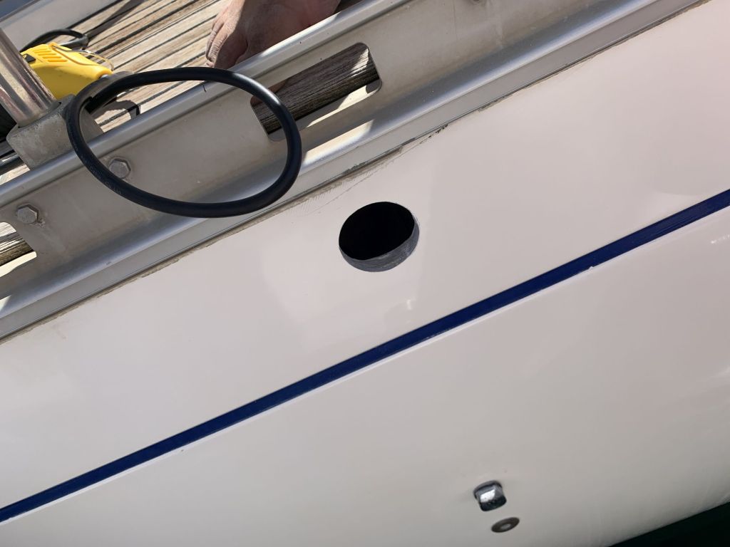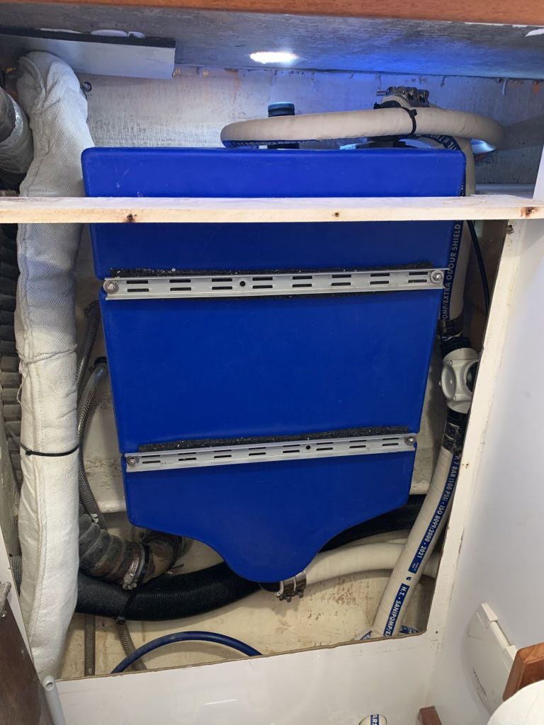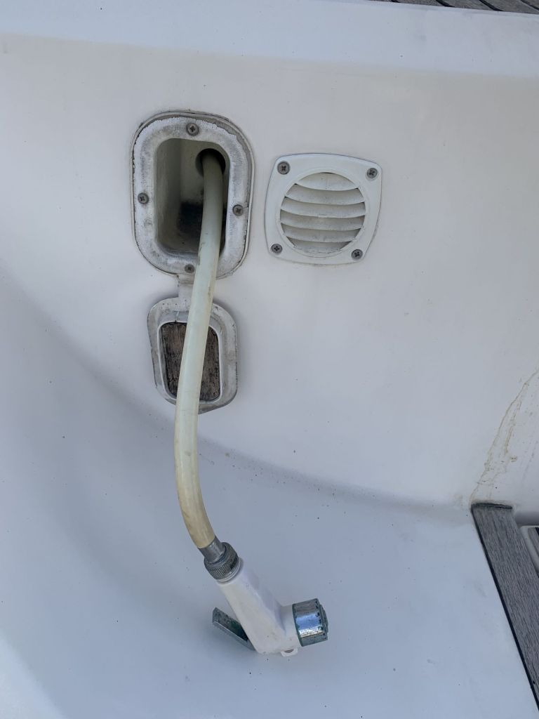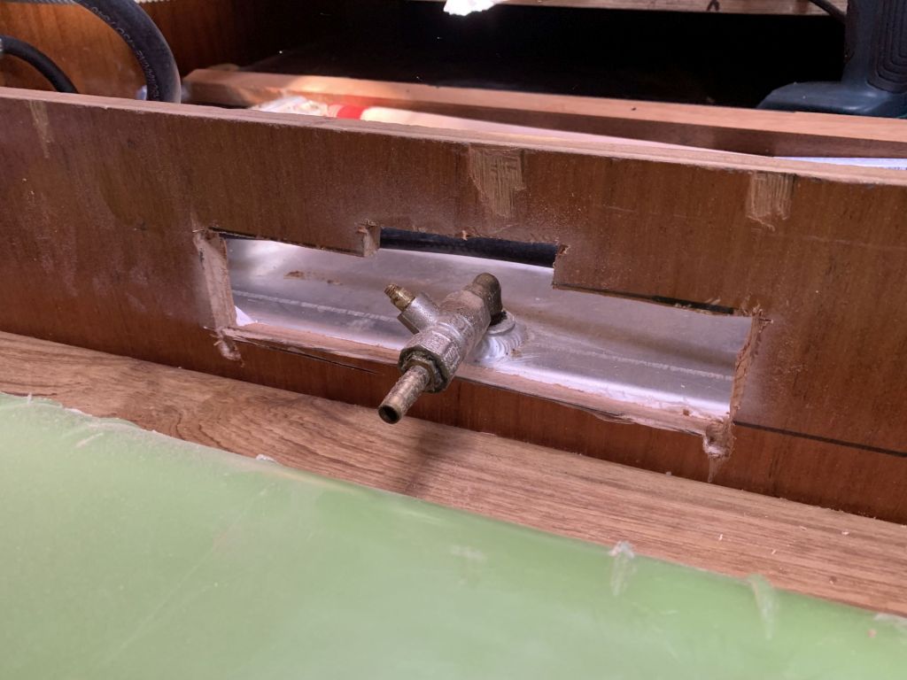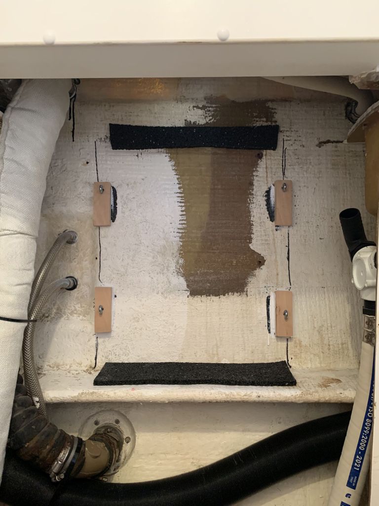 Soweit der Plan – offen gesagt, hinter der Klappe ist es jetzt noch leer. Ich werde die Wasseranschlüsse an einem Regentag umbauen, es ist dann eine Arbeit in der Backskiste.