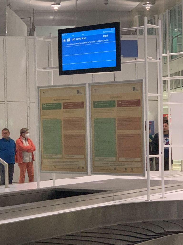 Wir sind pünktlich gelandet, waren rasch am Gepäckband, aber unsere Tasche kam nicht. Sibylle ging schon zum Taxistand aber ich wartete und wartete und wartete…