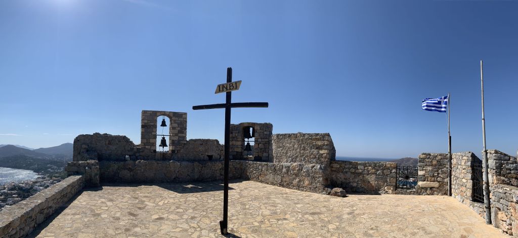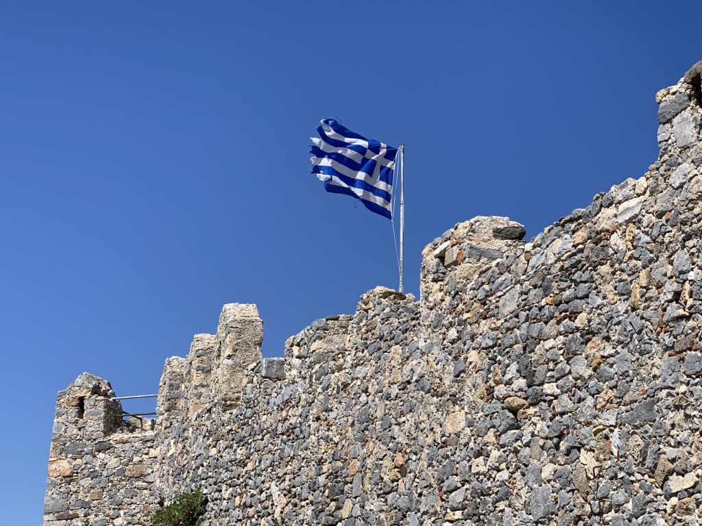 Über alledem weht, wie so oft und nahezu überall, die blau-weiße hellenische Flagge – mir gefällt das…