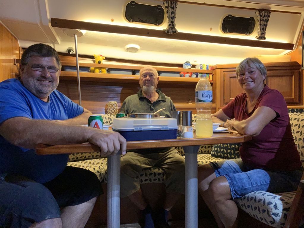 Wir helfen beim Anlegen und nutzen die Gelegenheit um die Beiden zum Dinner an Bord von NESSAJA einzuladen. Endlich können wir uns für die netten Abende und Aperos im Haus der Freunde revanchieren.