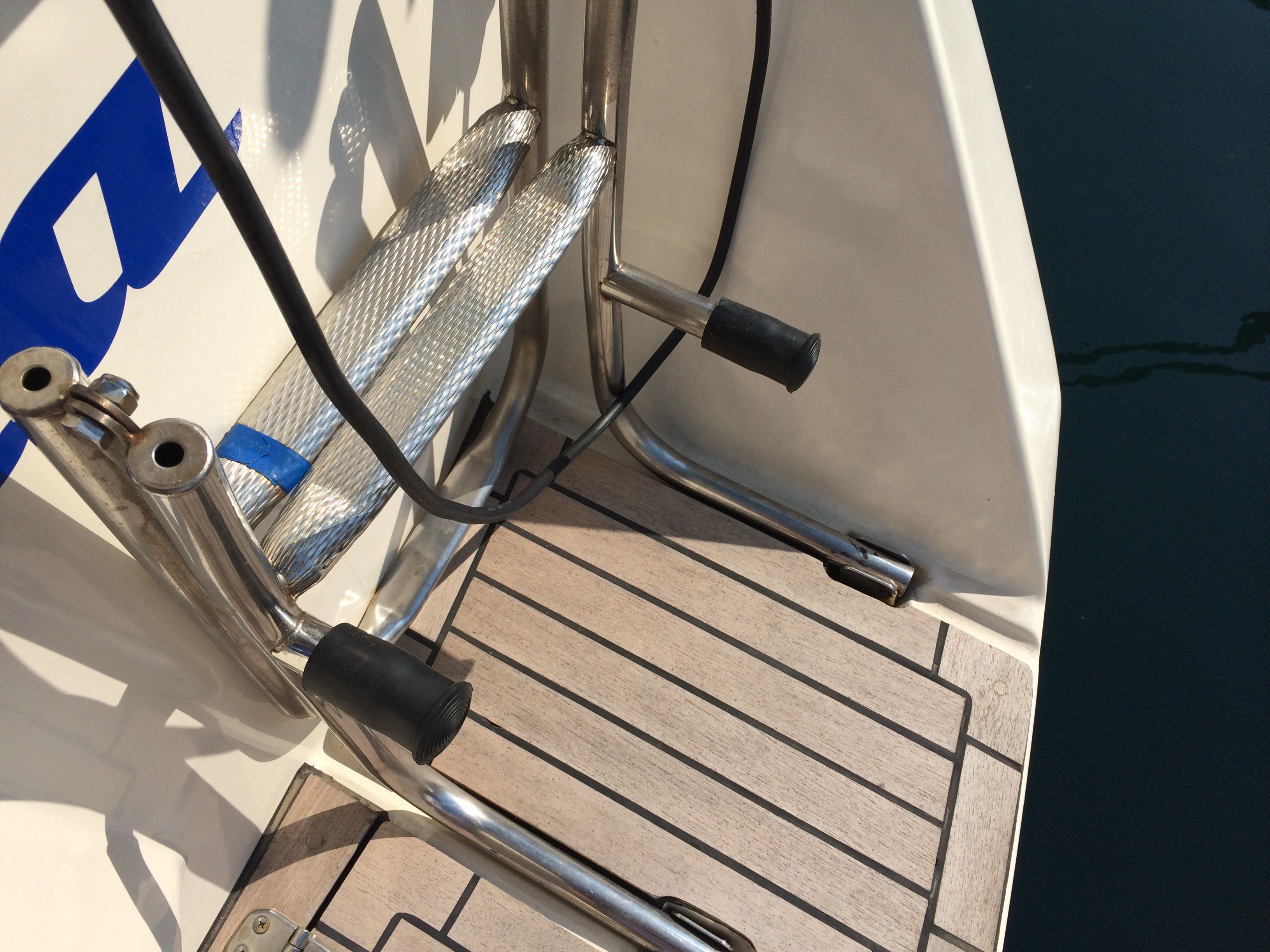 Ich habe nach einer Lösung gesucht, um zu verhindern, dass sich die Stützen unserer Badeleiter direkt am Heck abstützen und dabei die neu Instand gesetzte Oberfläche gefährden.