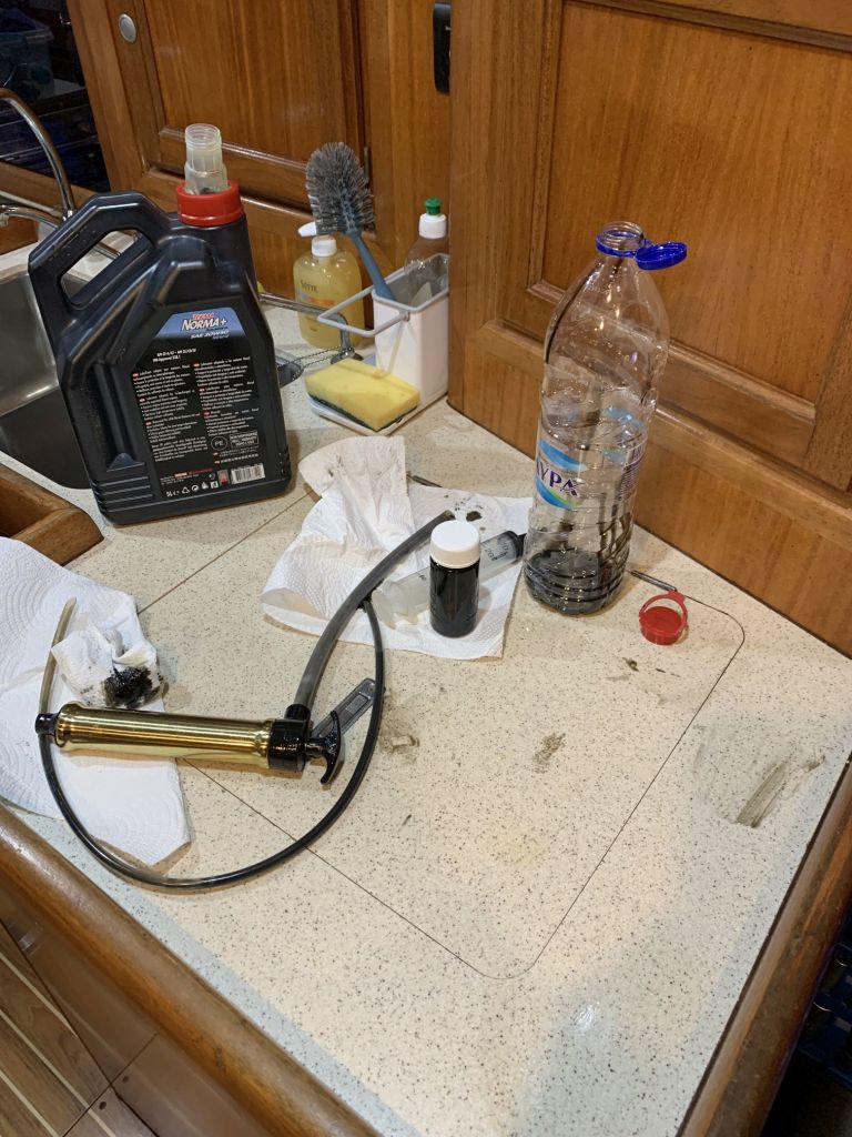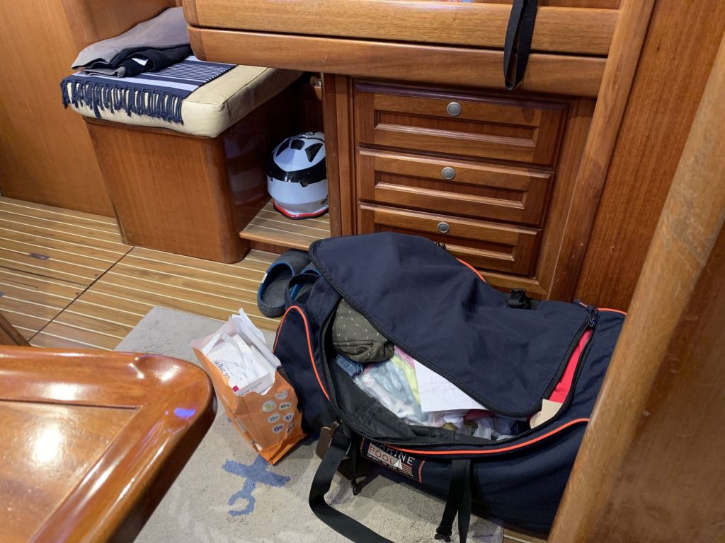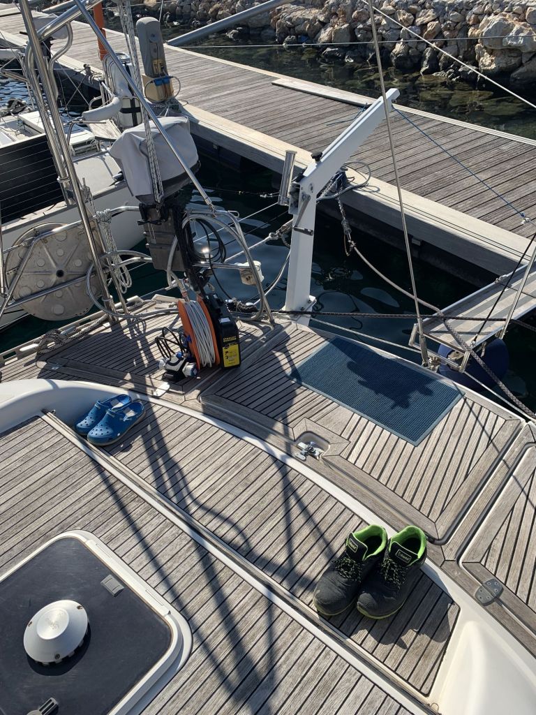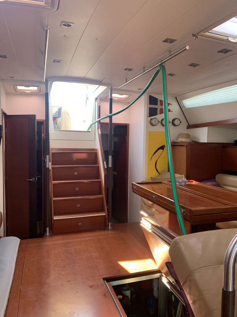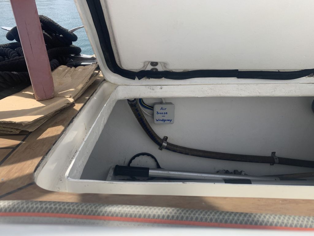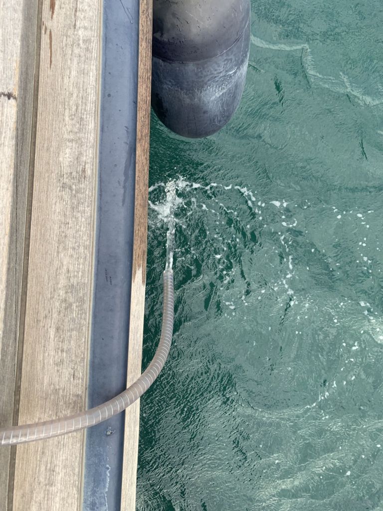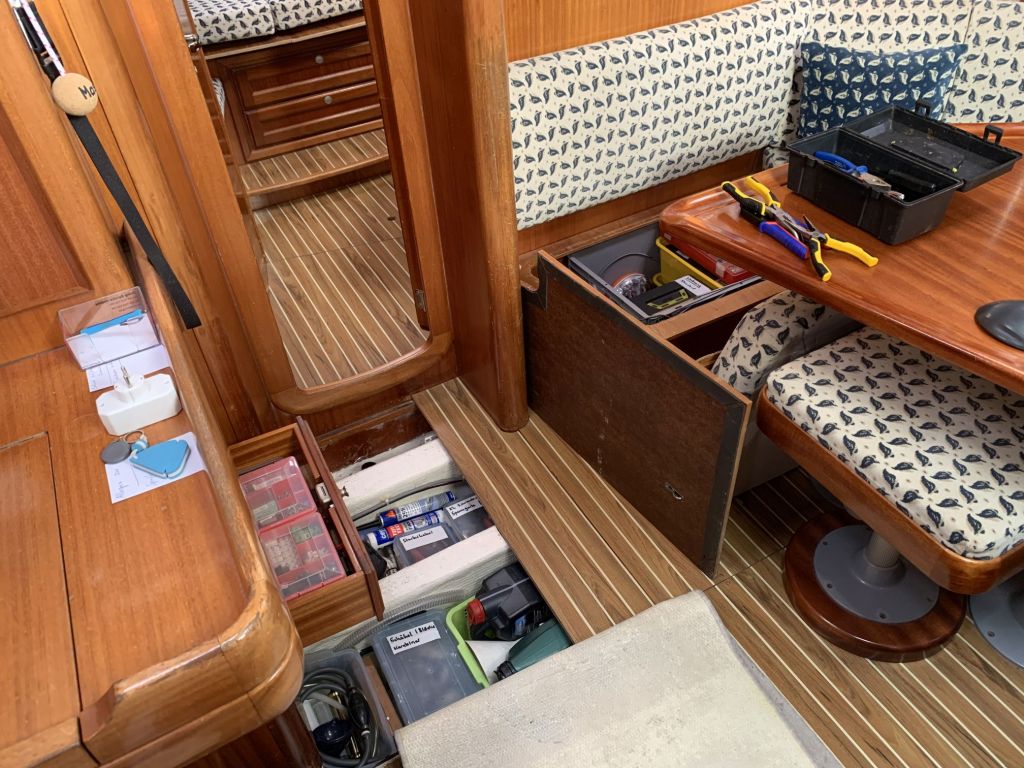 Für mich gibt es an diesem Tag nur noch eine Aufgabe zu erfüllen, EDINA für die Übergabe vorbereiten. Dafür soll ich die große Tauchpumpe aus dem Innenraum nehmen, die Motorklappe schließen und den Schlüssel deponieren sowie ein Brett bereitlegen – ok, das mache ich gerne!