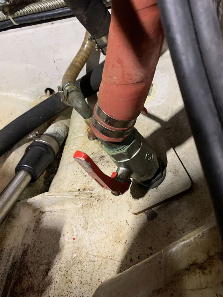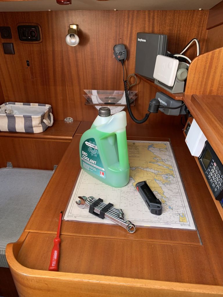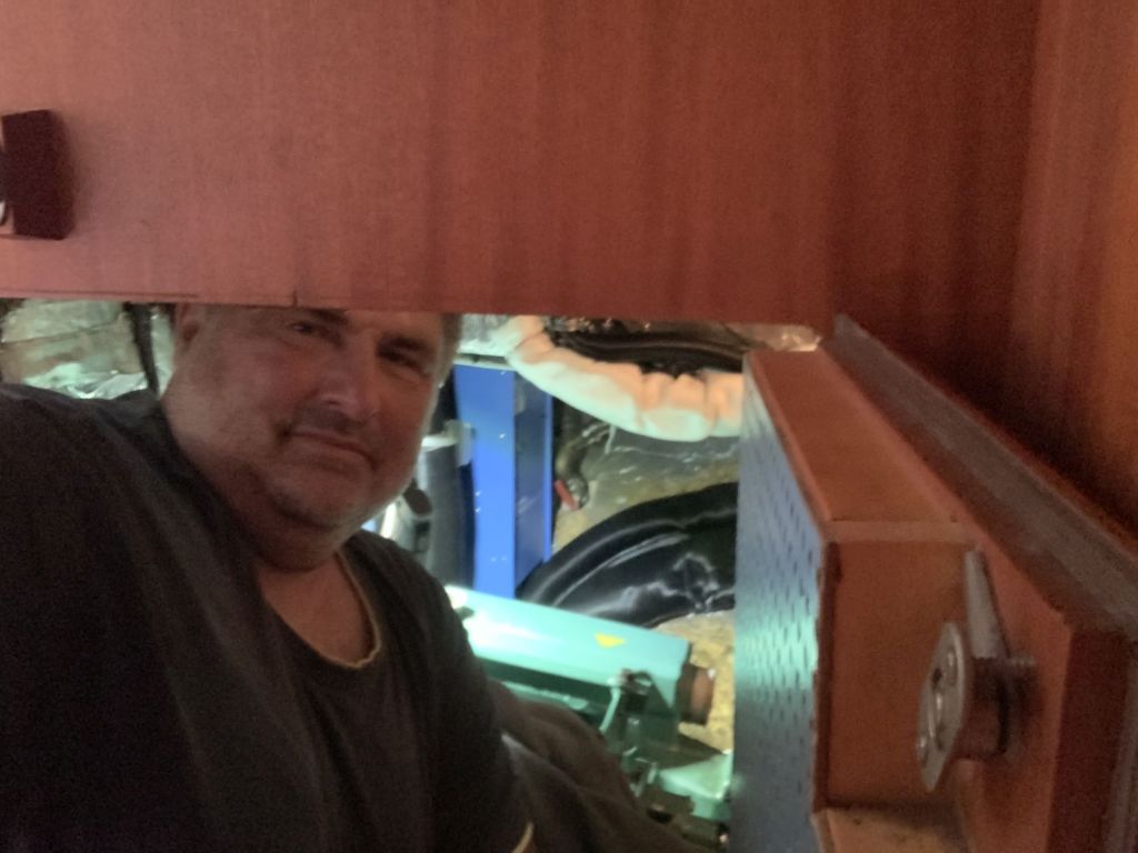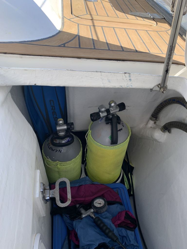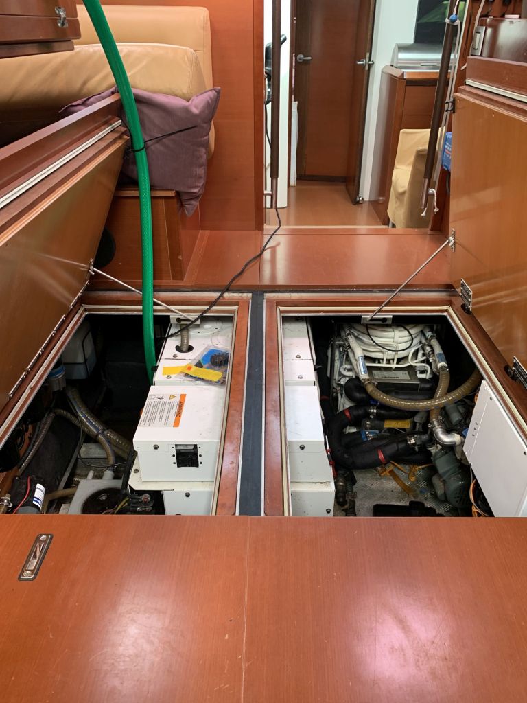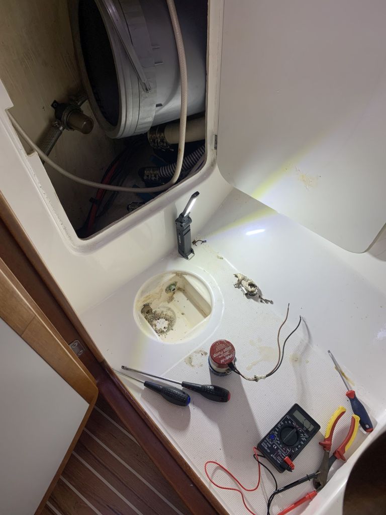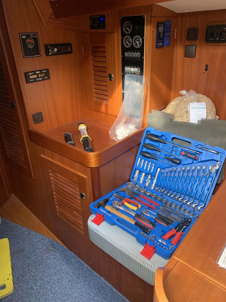 Für mich gibt es an diesem Tag nur noch eine Aufgabe zu erfüllen, EDINA für die Übergabe vorbereiten. Dafür soll ich die große Tauchpumpe aus dem Innenraum nehmen, die Motorklappe schließen und den Schlüssel deponieren sowie ein Brett bereitlegen – ok, das mache ich gerne!