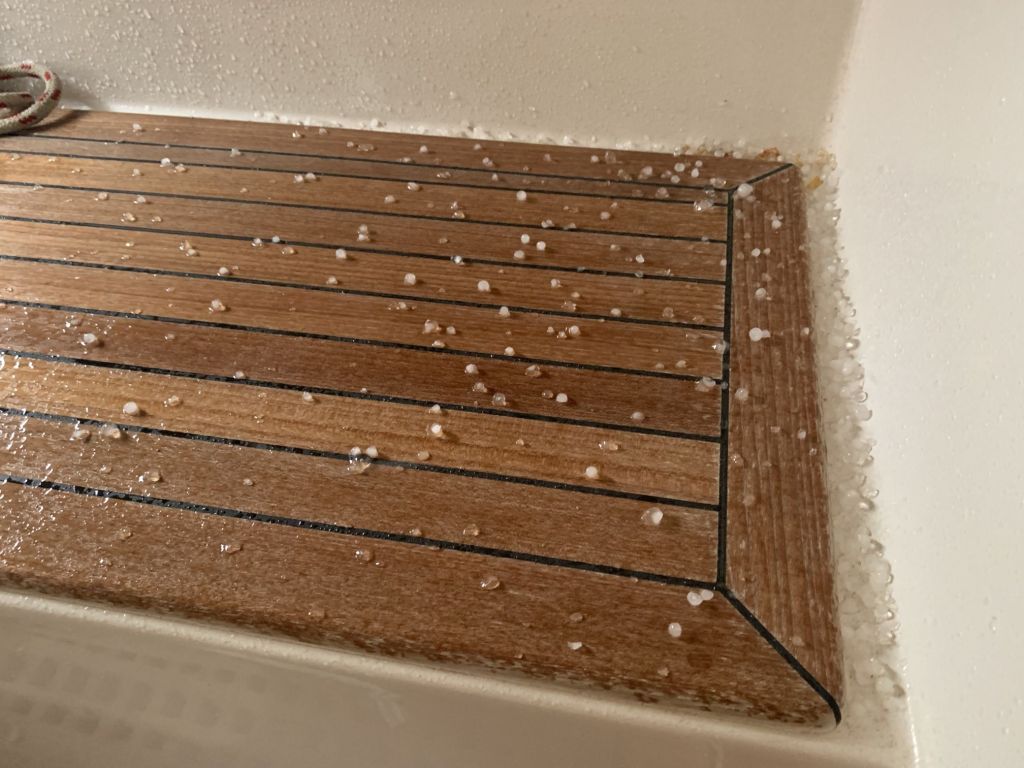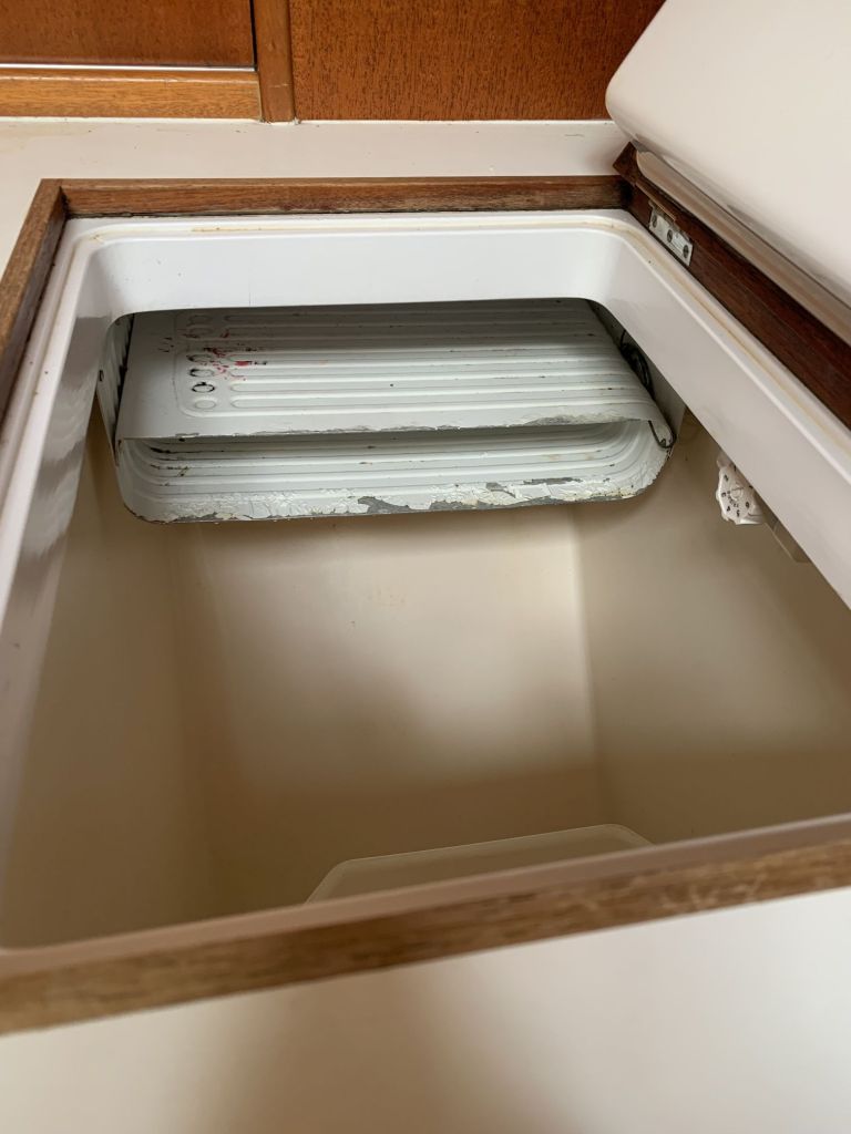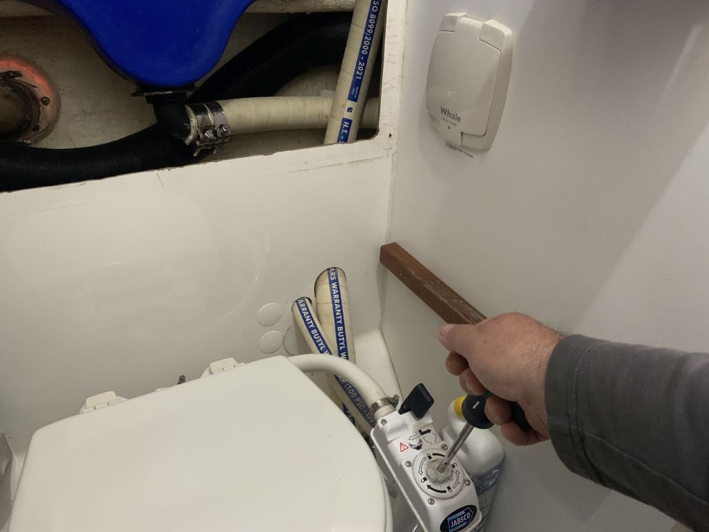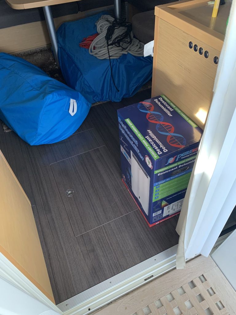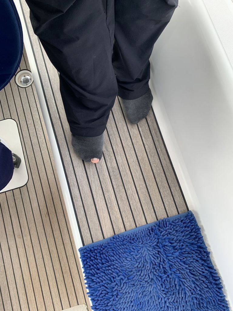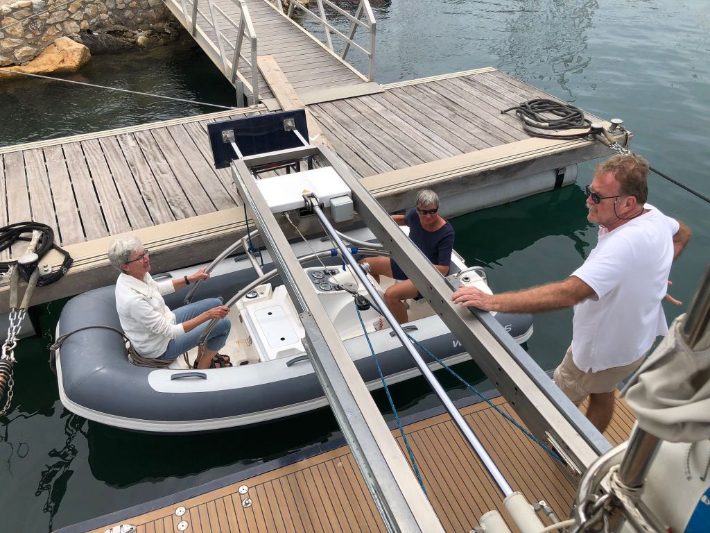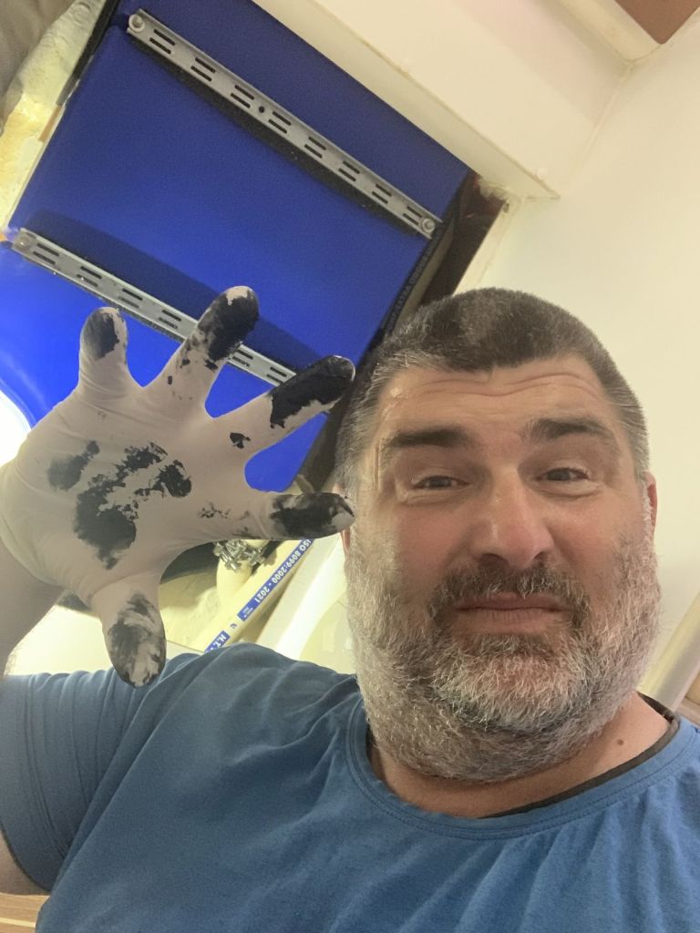 Für mich gibt es an diesem Tag nur noch eine Aufgabe zu erfüllen, EDINA für die Übergabe vorbereiten. Dafür soll ich die große Tauchpumpe aus dem Innenraum nehmen, die Motorklappe schließen und den Schlüssel deponieren sowie ein Brett bereitlegen – ok, das mache ich gerne!