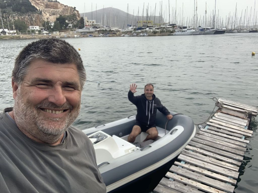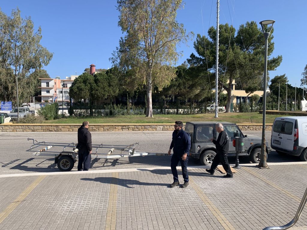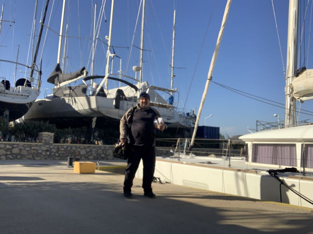 Wir sind keine Minute zu früh fertig. Ich konnte gerade noch das Werkzeug verräumen, da höre ich Kranmann Giannis schon über mich sprechen. Als ich auf seiner Höhe war rief er mir schon entgegen – „…pame Mario, are you ready with ALENA? You are the next!“