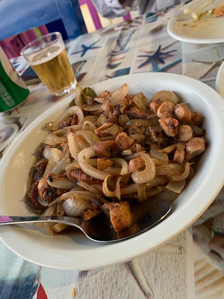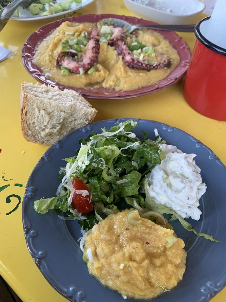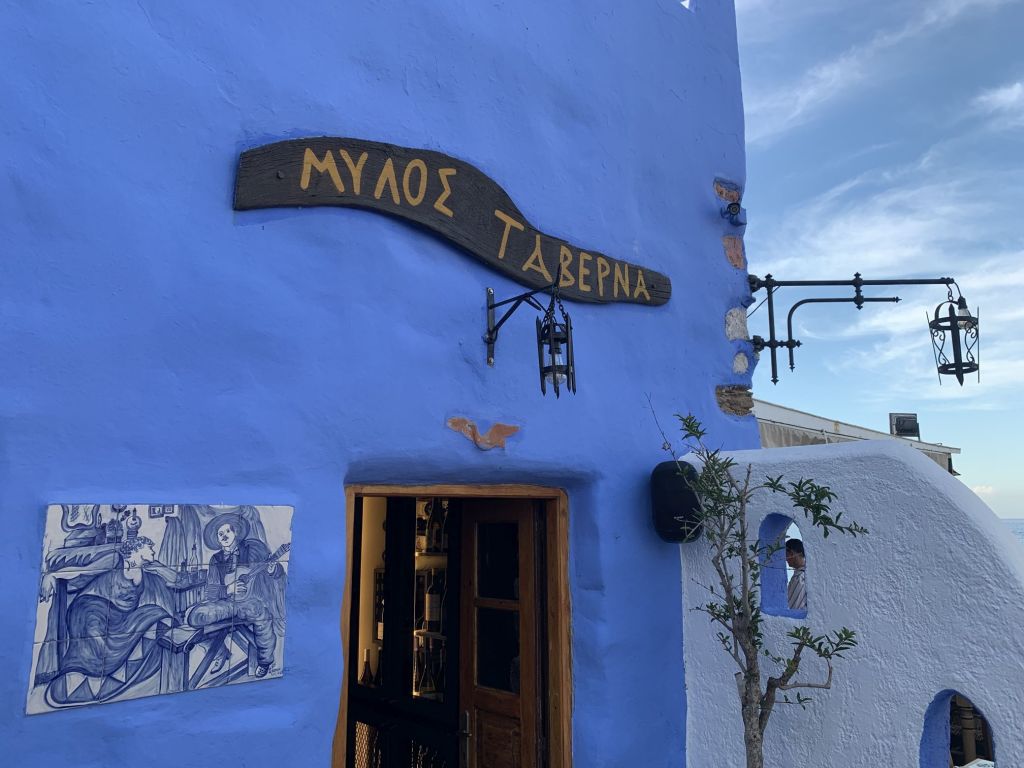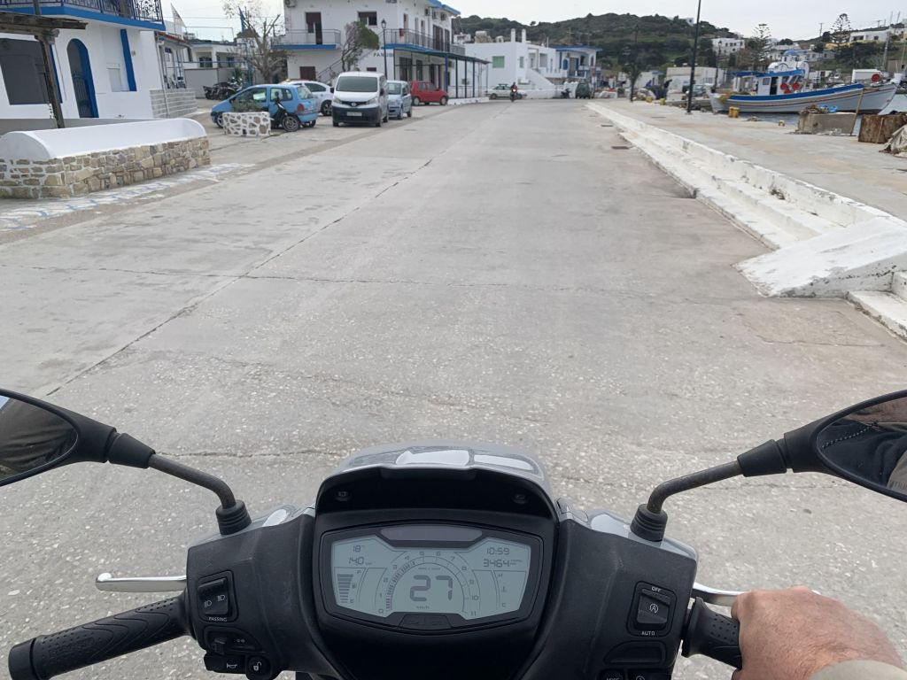 Auch Volker kann seine Pläne verwirklichen – er macht den ersten Stop im „Stigma“ auf Archangelos und sendet Grüße von Giorgos dem Tavernenwirt. Das von uns beworbene „Octopus Tigania“ hat er bekommen – der Tag findet also für uns alle ein versöhnliches Ende.