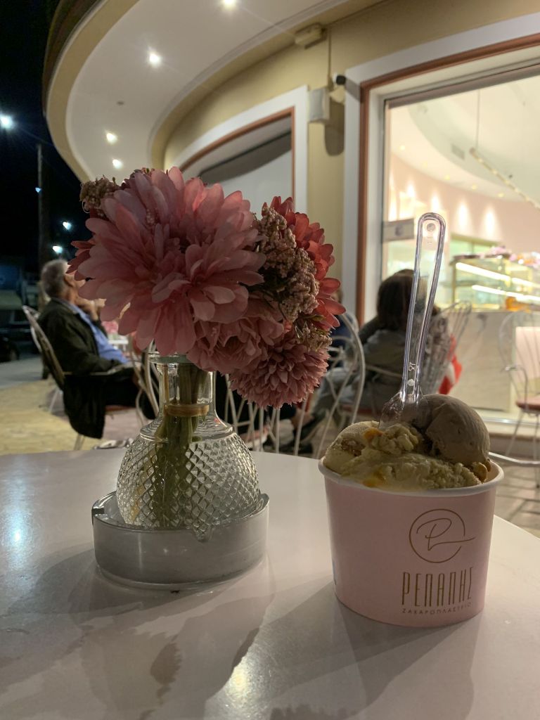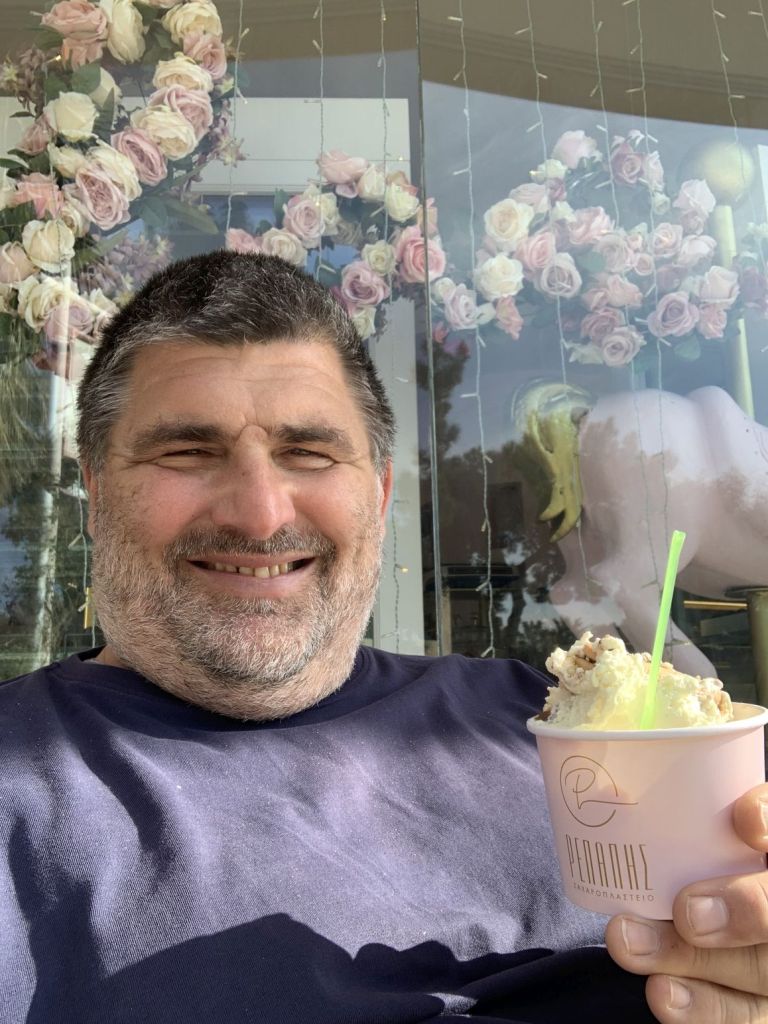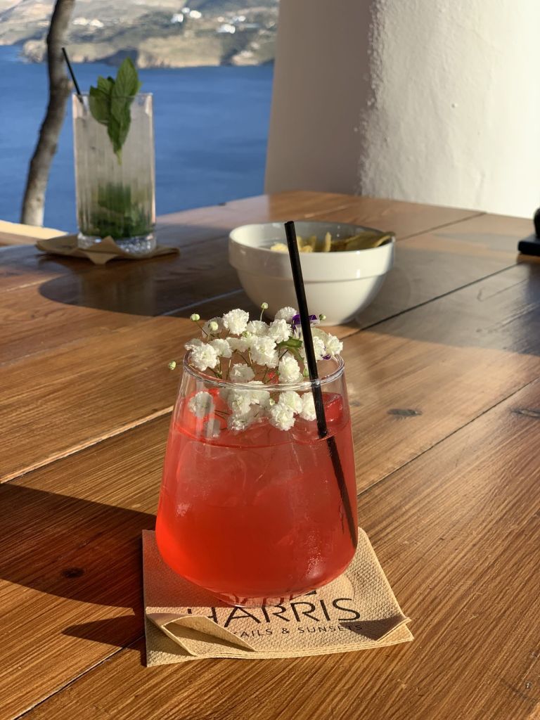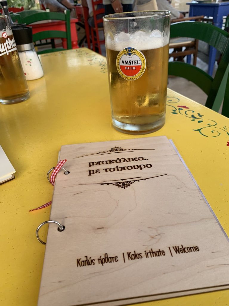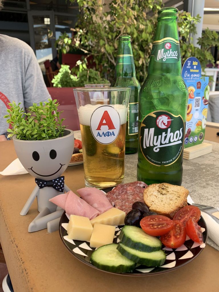 Den Abend läuteten wir in „Harris Bar“ ein. Ein Aperitif tat dem angeschlagenen Gemüt gut. Danach sollte es zu „Dimitris o´ Karaflas“ gehen – in die Taverne des Glatzkopfs.