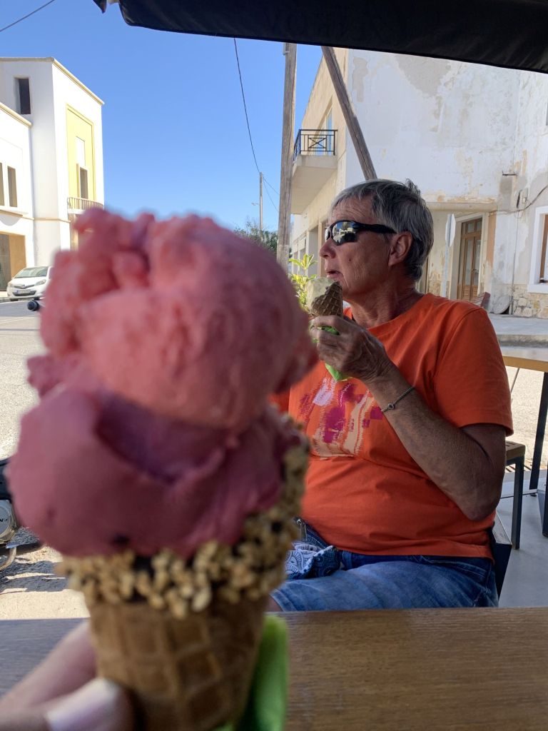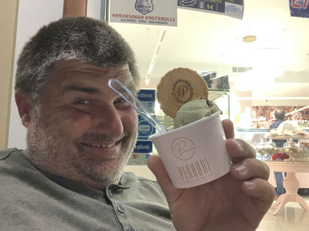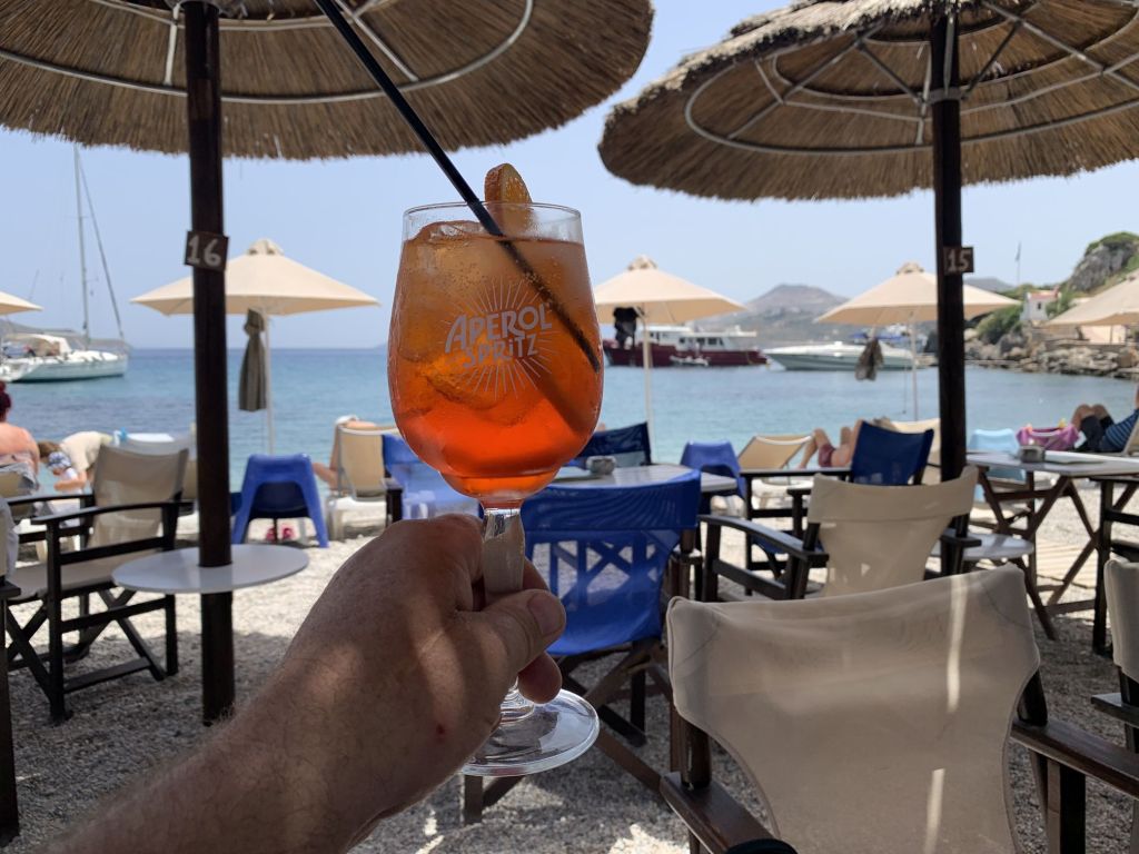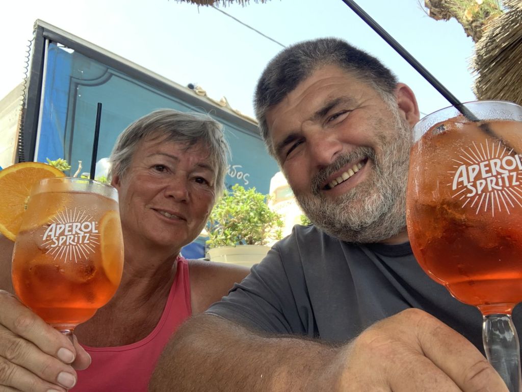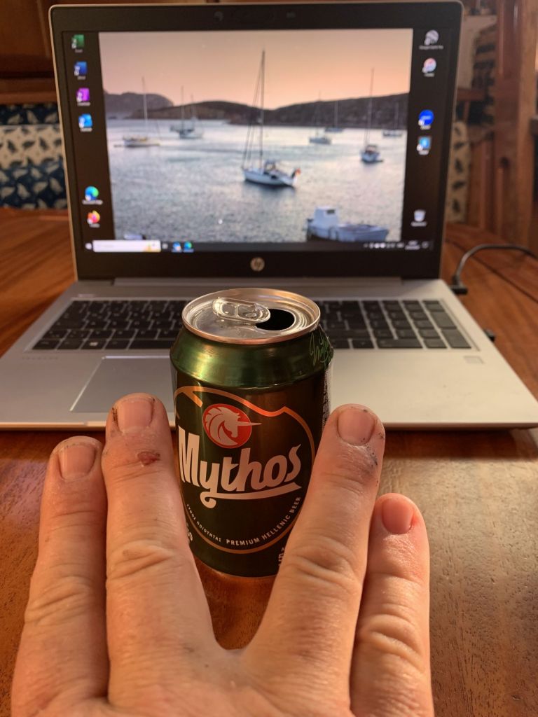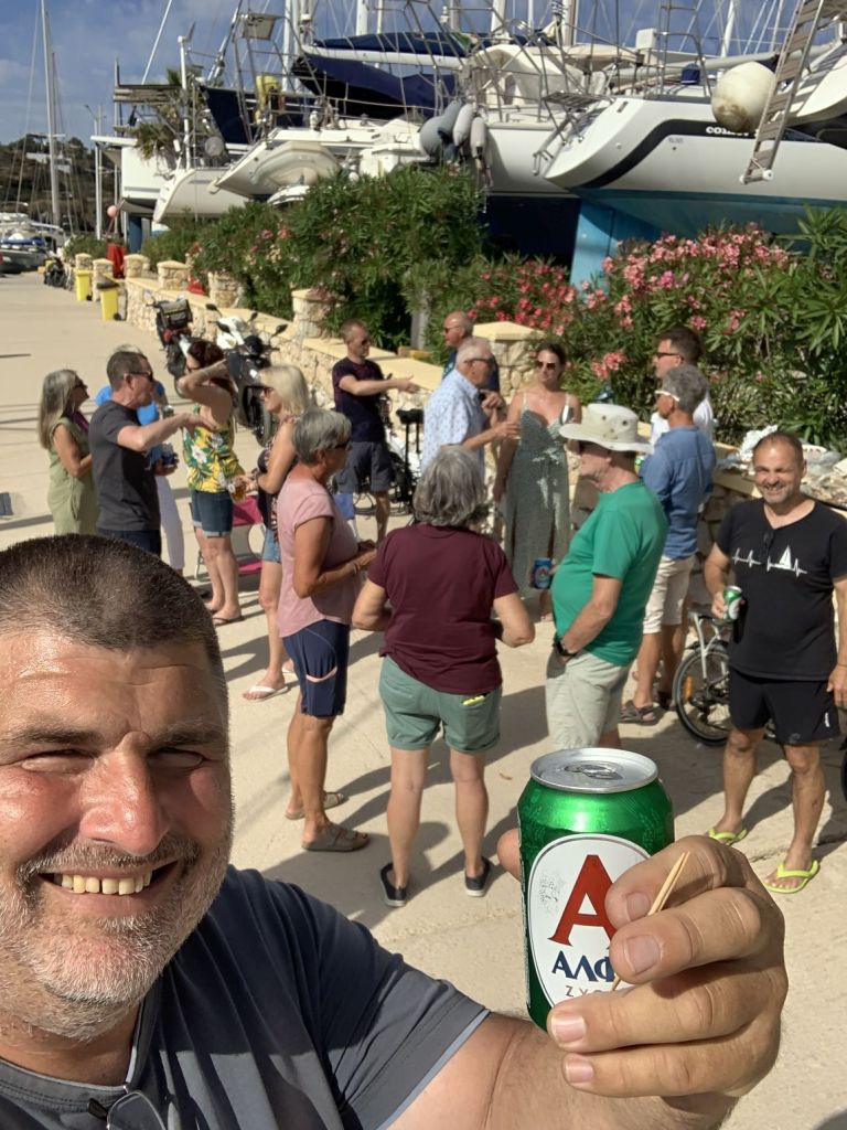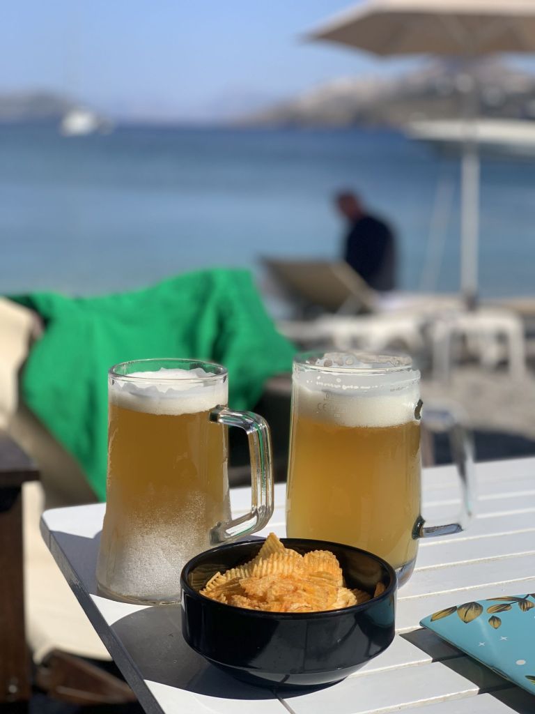 Jetzt aber! Final verabschieden wir uns von den österreichischen Freunden und fahren nach Lakki. Dort waren wir, aufgrund der knappen Zeit, auf einen schnellen Drink mit Heribert von der STARLIGHT III verabredet. Seine vorläufig letzte Stippvisite auf Leros war mit heißer Nadel gestrickt – wir freuen uns daher umso mehr, dass es noch für ein gemeinsames Bier reicht – er wisse noch nicht wie lange er bleibt und ob wir uns nach unserer Rückkehr noch einmal sehen würden. Na dann Prost mein Freund!
