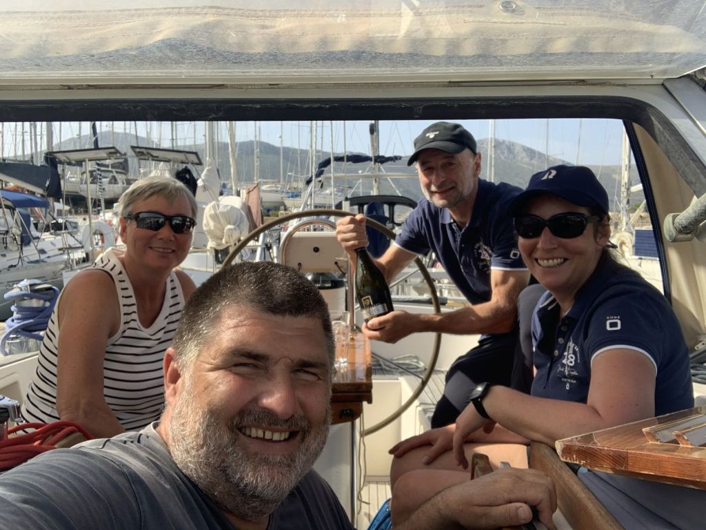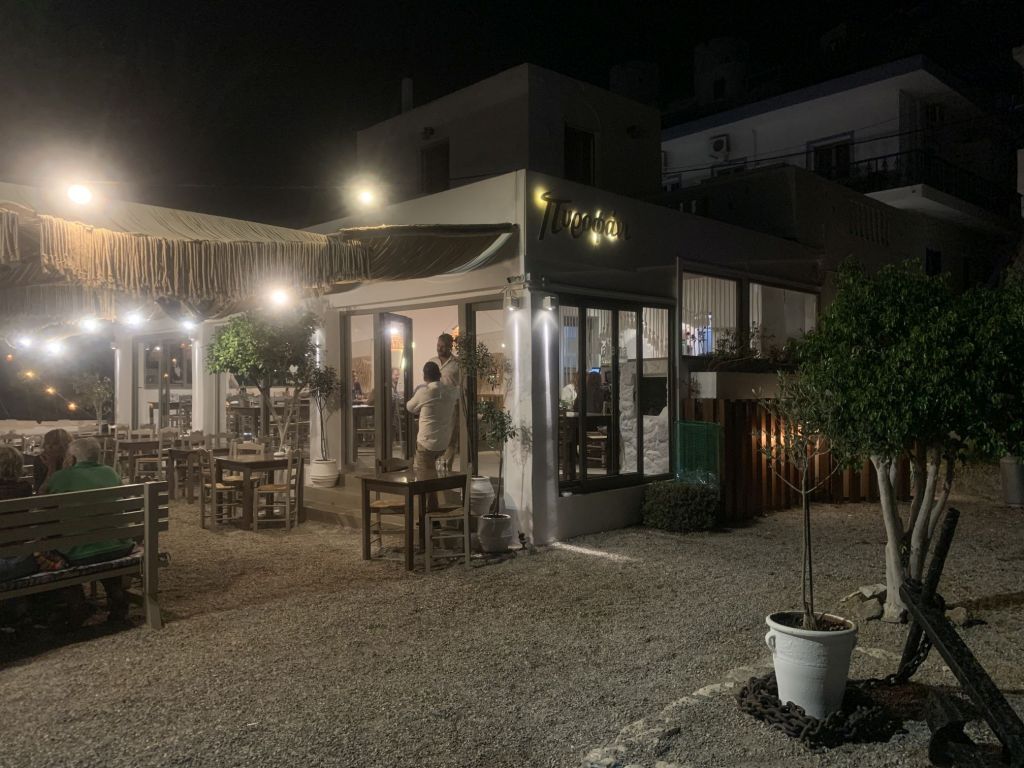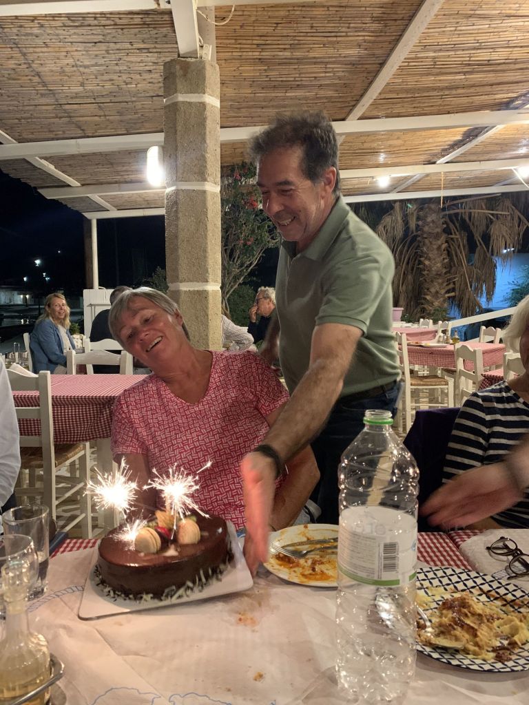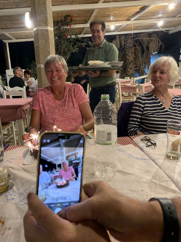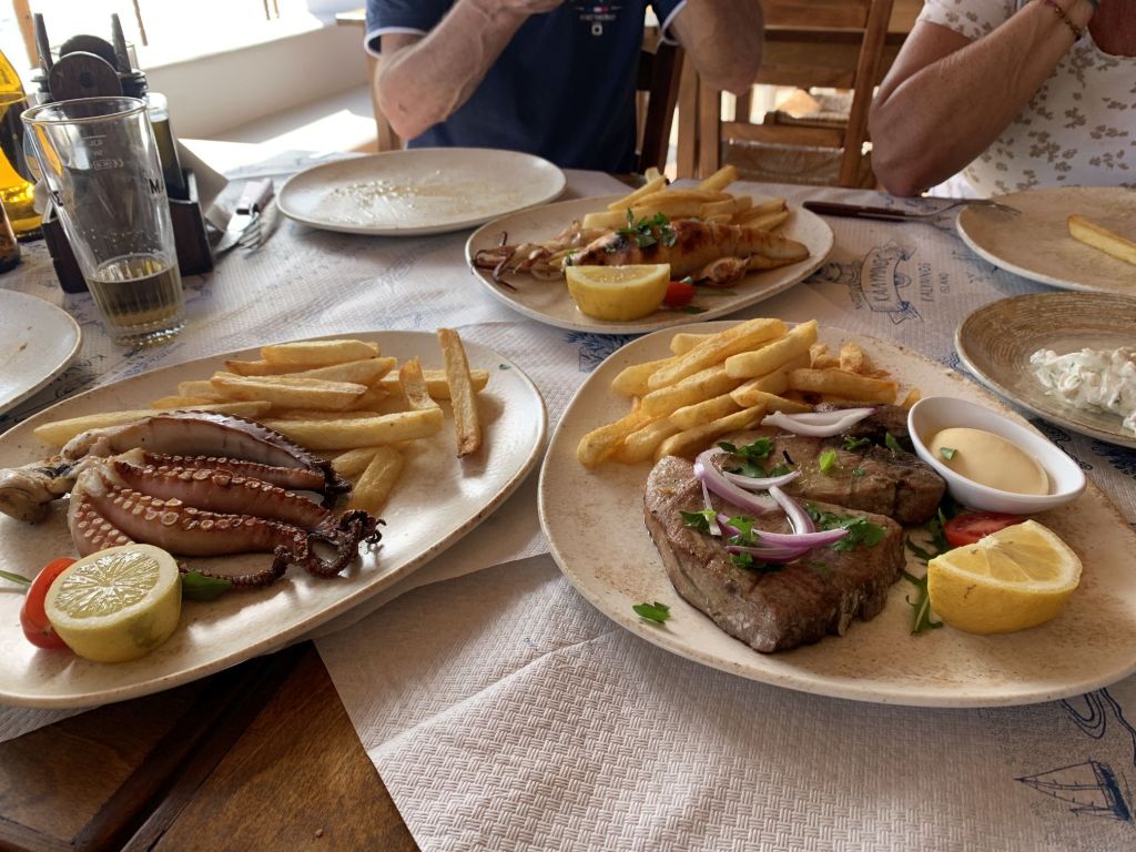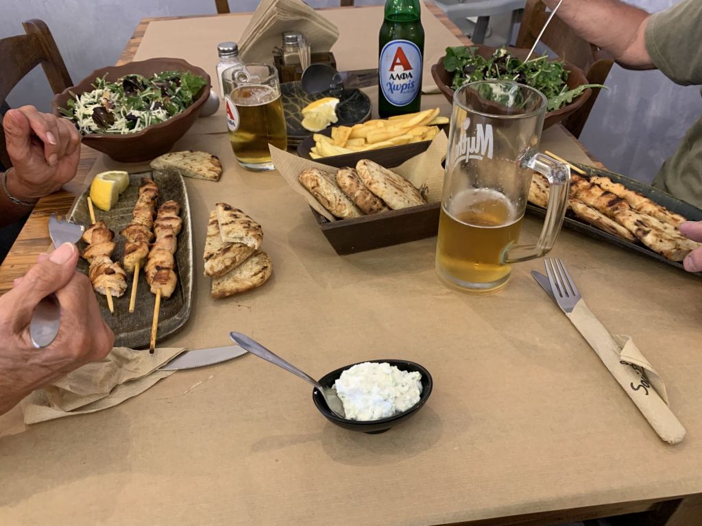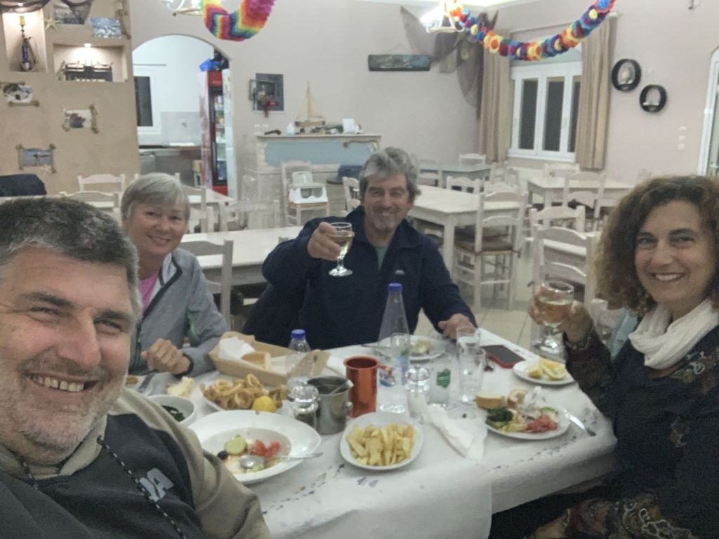 Die Beiden sollten den Ort wählen und einladen wen sie wollten. So kam es, dass wir in kleiner Runde mit den Crews der LIBERTÉ und der JASPER bei „To Steki“ zum Dinner saßen.