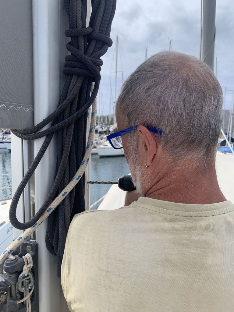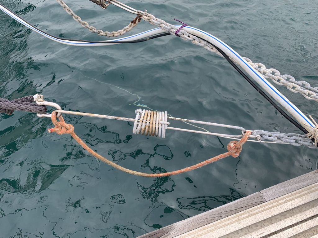 Egal, dazu später mehr. Jetzt muss ich in dem von mir geplanten Tagesablauf bleiben, sonst entgleitet mir meine To-Do Liste! Ich hatte Hans-Peter versprochen eine Fallklemme mit ihm zu montieren, danach würde er noch einmal tauchen.