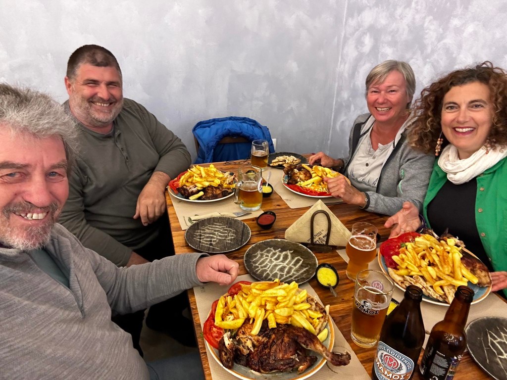 Den Tag beenden wir mit den Freunden im „Metzes“, sie freuen sich, dass es ein aus ihrer Sicht neues Lokal auf Leros gibt, das möchten sie gerne kennen lernen.
