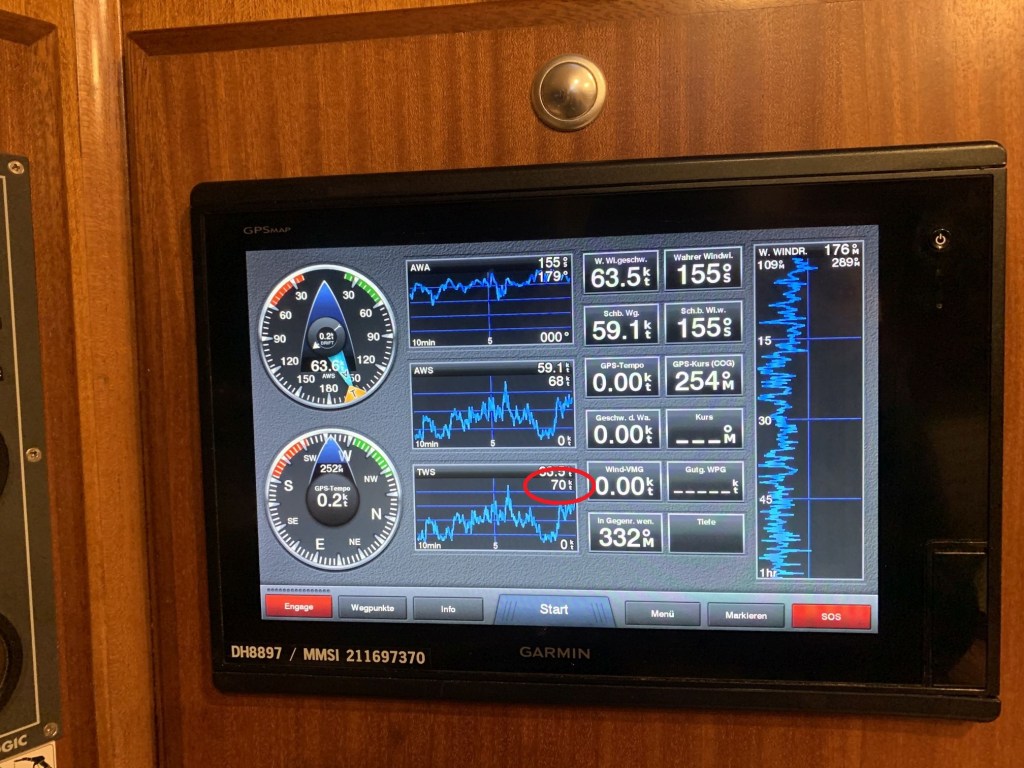 Unser Hotel war nur um die Ecke, auch Sibylle und ich waren erschöpft und gingen früh ins Bett – nicht jedoch, ohne noch einmal auf unserem Schiff, unserer NESSAJA, nach dem Rechten zu sehen. Das geht heute auch im nautischen Bereich smart und per Telefon. Es scheint alles in Ordnung zu sein…