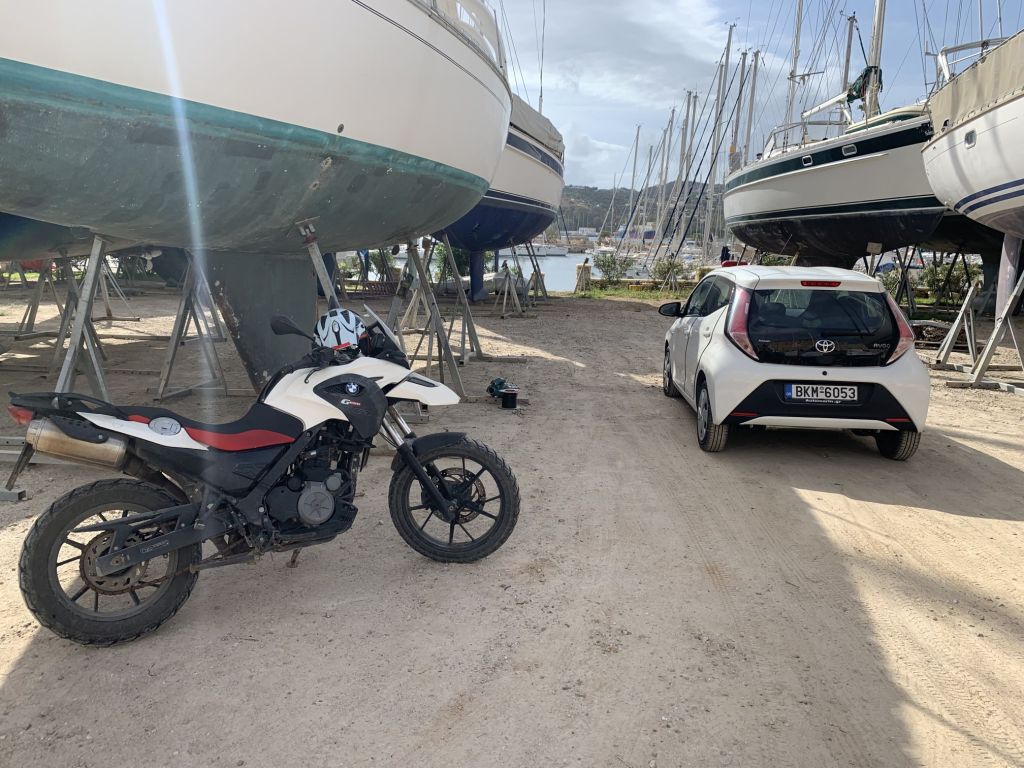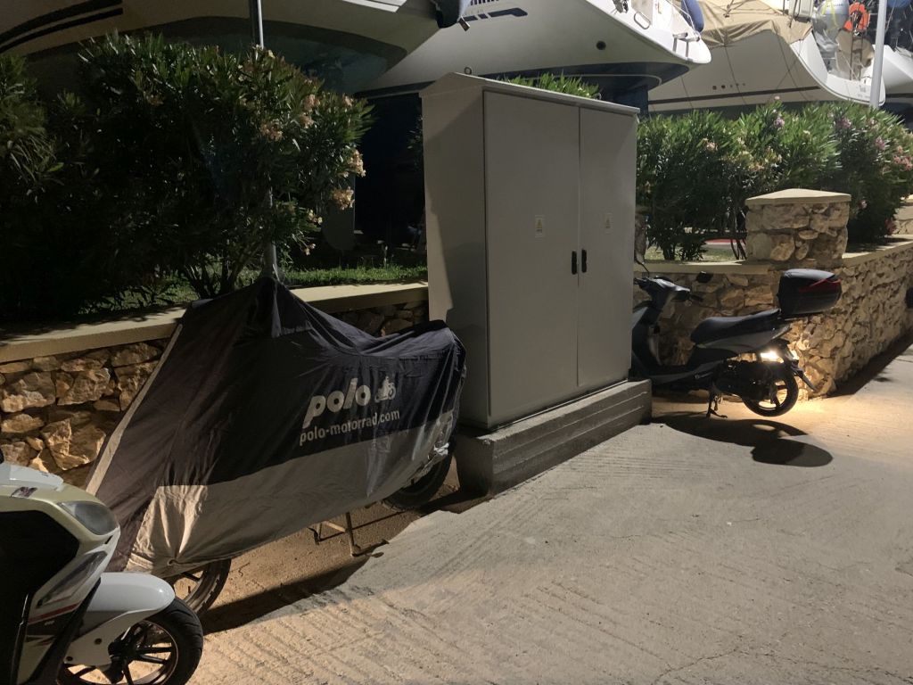Spät abends trennen sich unsere Wege und Sibylle und ich fahren zurück in die Marina. Wir parkieren noch unsere Feuerstühle an einem geeigneten Platz und verpacken die GS – dann ist das Tagwerk geschafft! Wir sind gut vorbereitet, morgen früh geht es los…