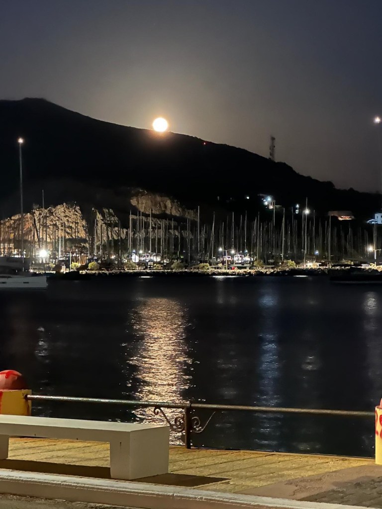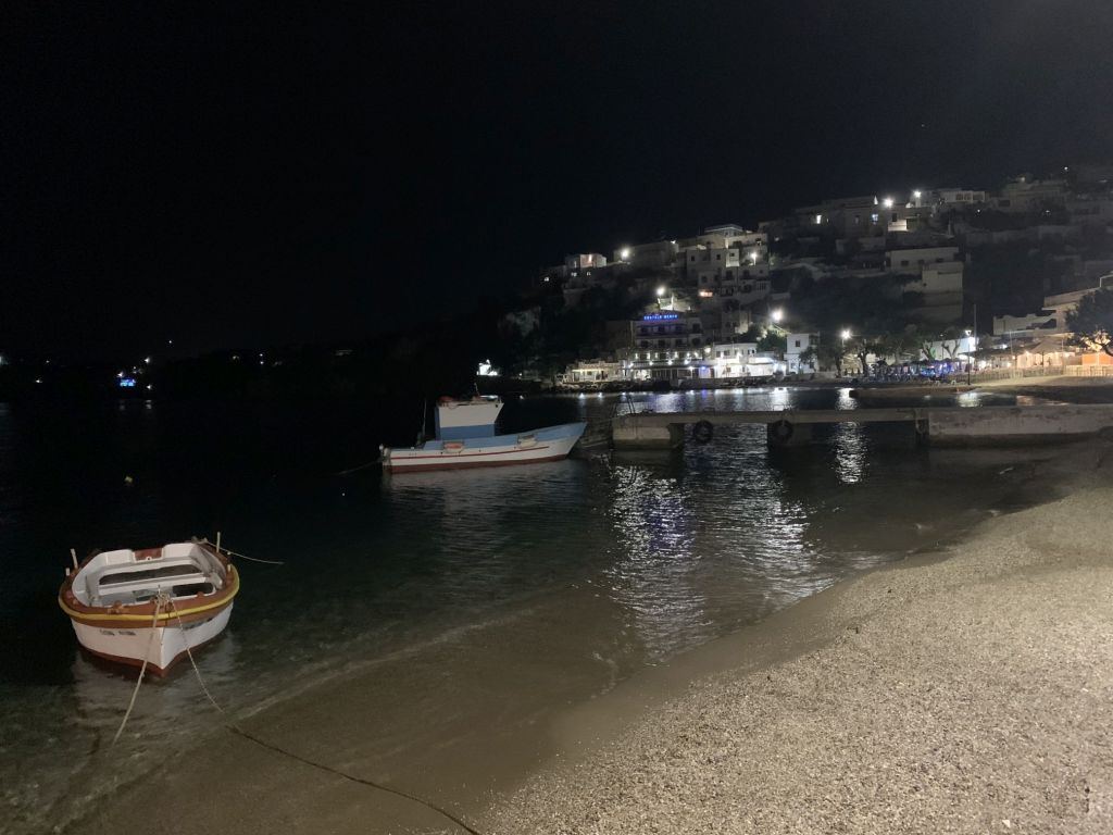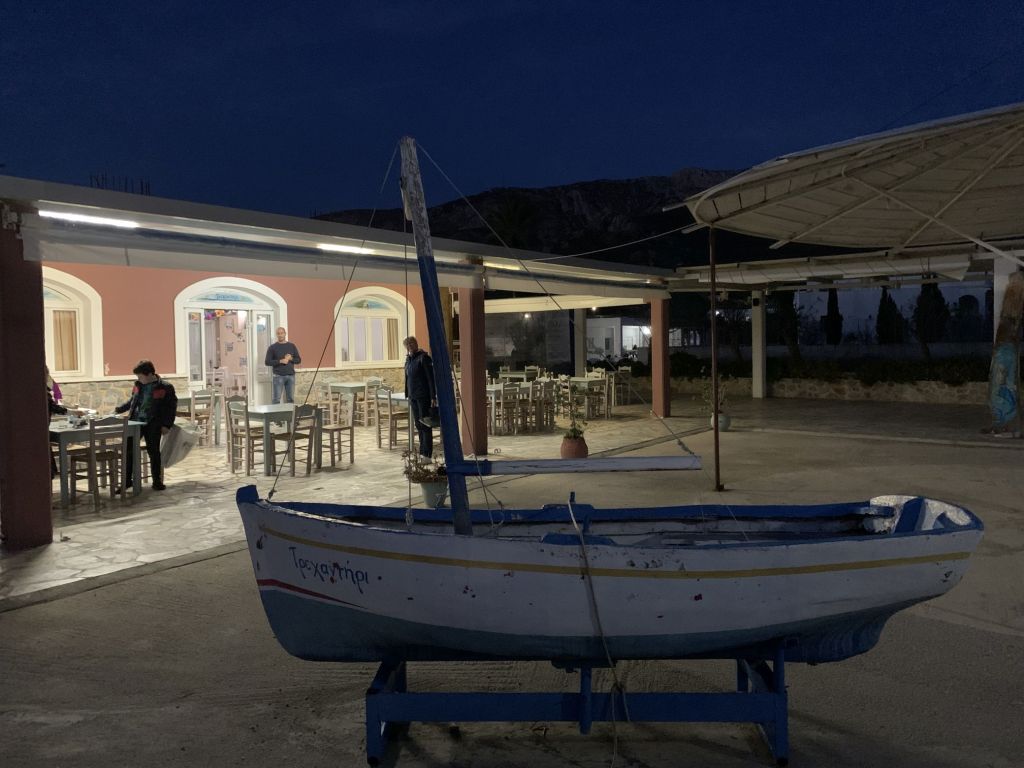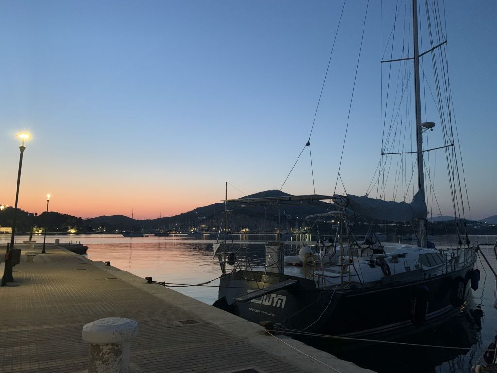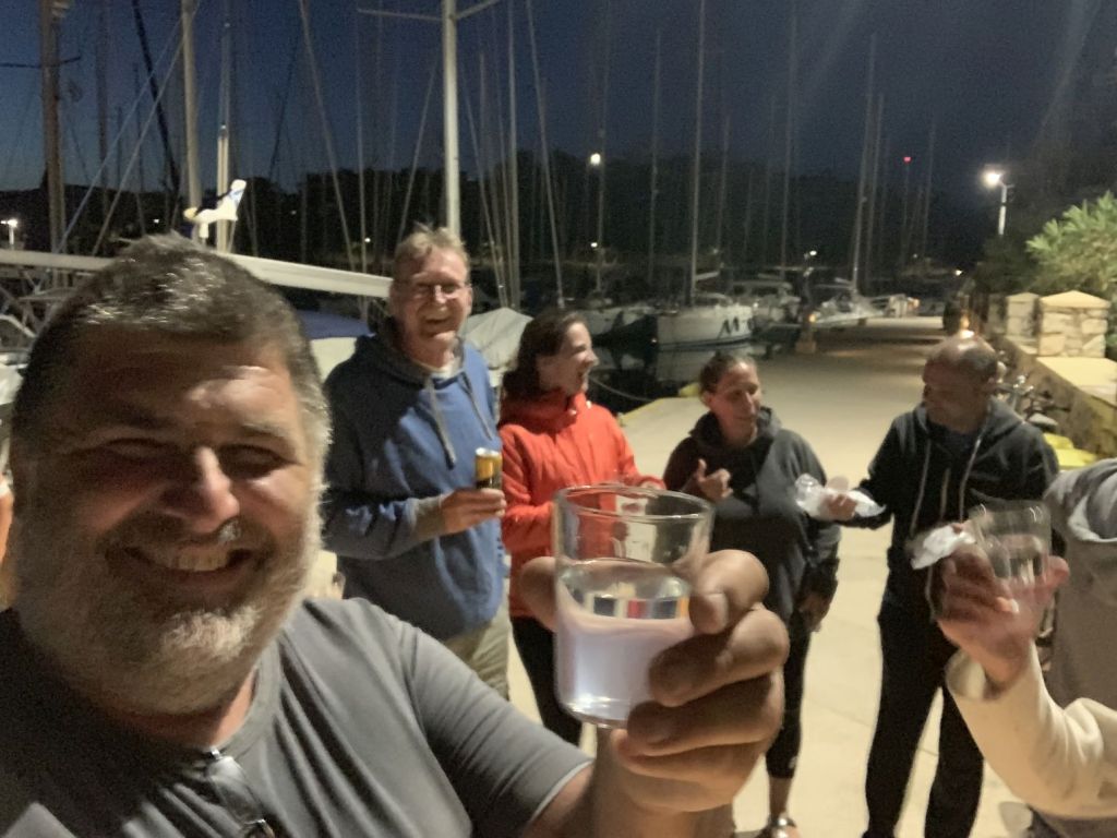 Der Abend klingt schön aus, wir sind satt, trinken noch einen Ouzo, dann ziehen wir uns auf unsere Schiffe zurück.
