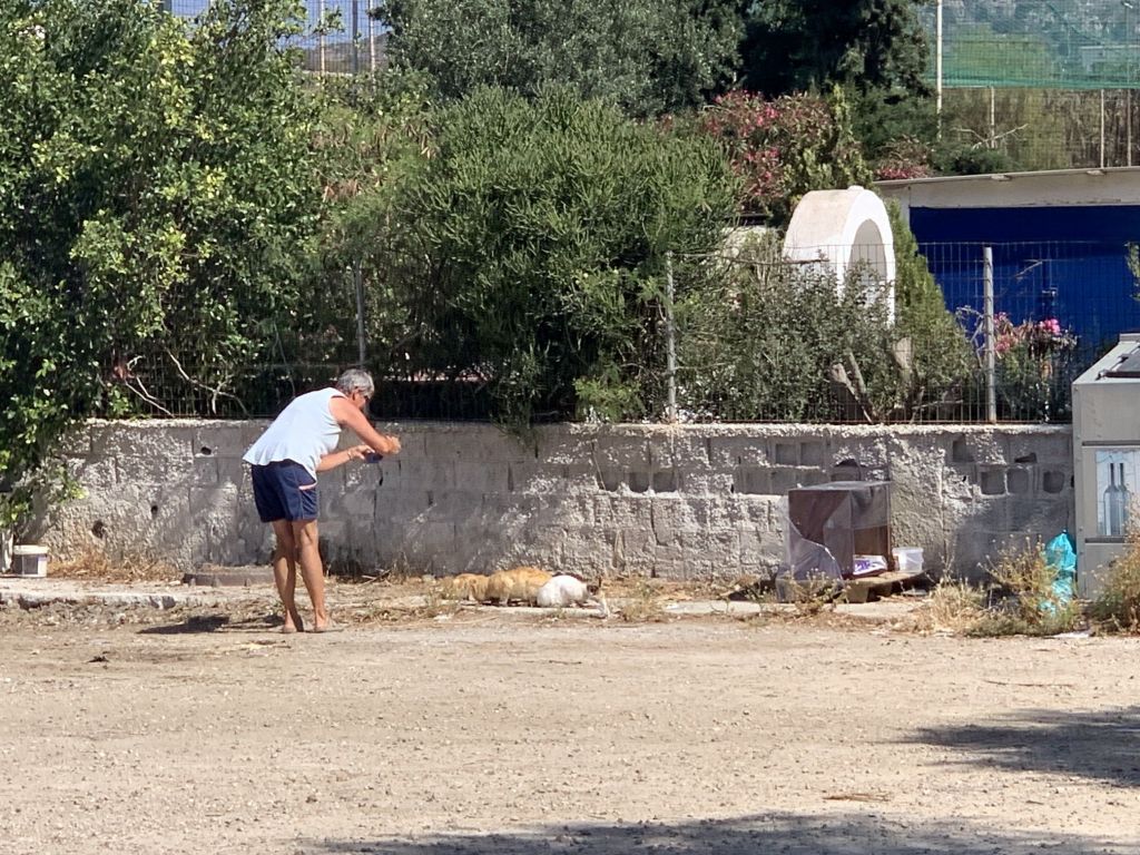 Zunächst galt es, die von Eva an uns vergebene Katzenfürsorge zu erfüllen. Sibylle widmet sich dem Füttern der Kätzchen und sorgt dafür, dass die kranke Mieze ihre Tabletten bekommt.