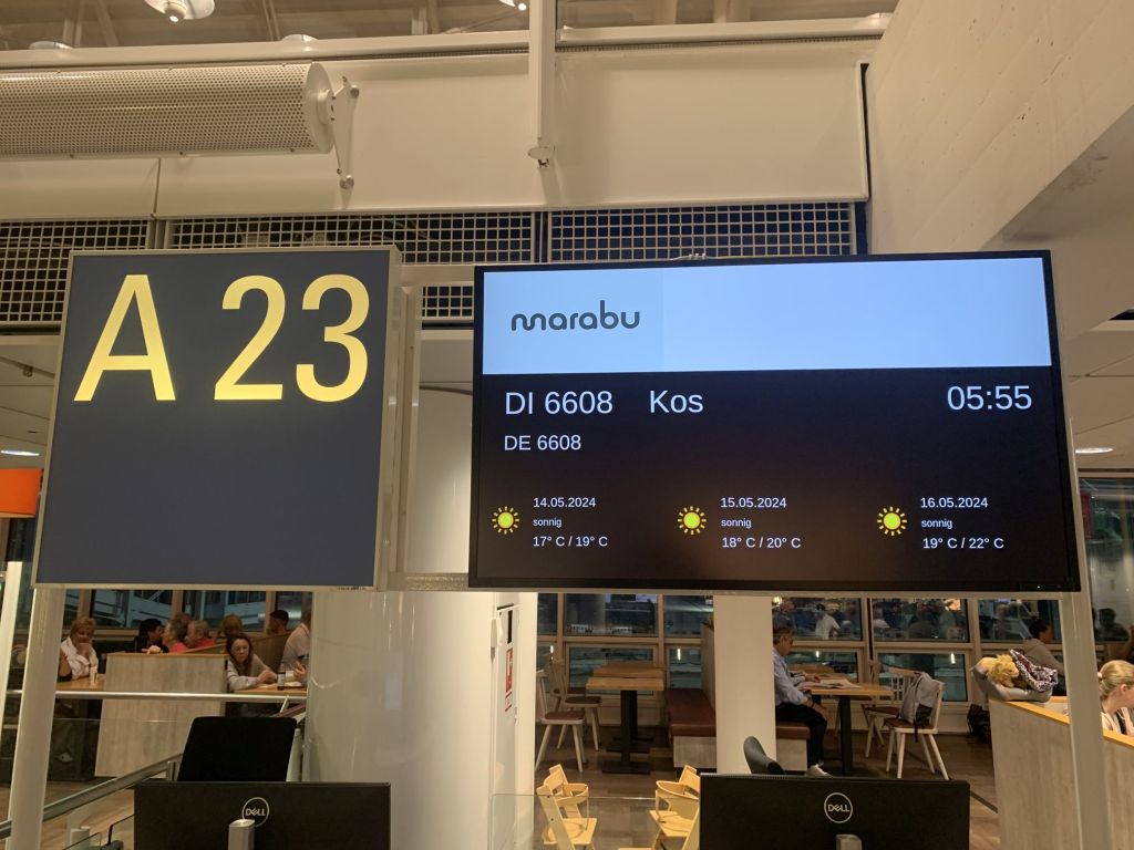 Das ficht uns aber nicht an, unser Flug würde diesmal erst abends in Kos abgehen. Glück gehabt.