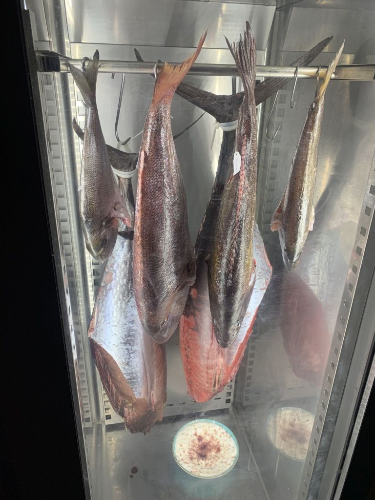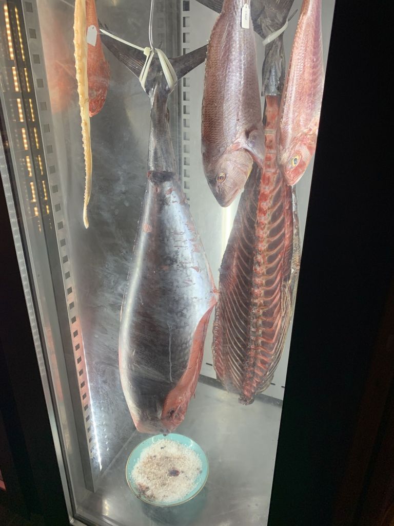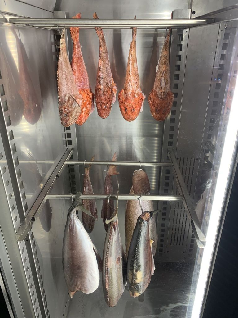 Wie immer blicke ich beim Gehen in den Schrank in dem der Fisch aufbewahrt wird. Es fasziniert mich, welche Vielfalt von Edelfisch hier gelagert wird.